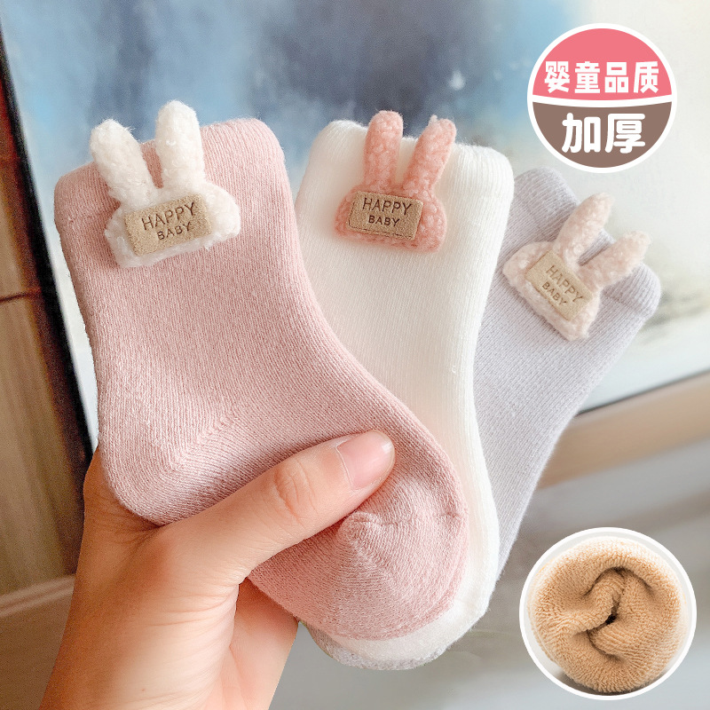 婴儿袜子冬季新品新生卡通初生婴幼儿宝宝加厚毛圈保暖中筒袜