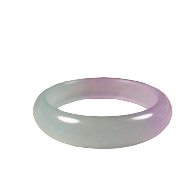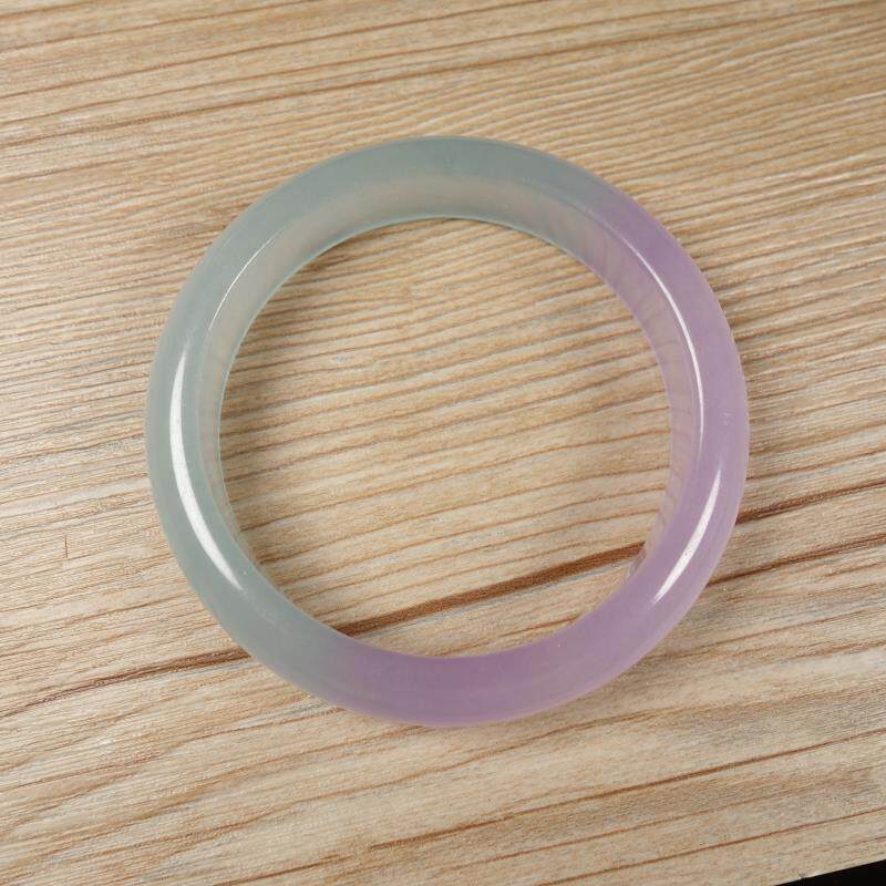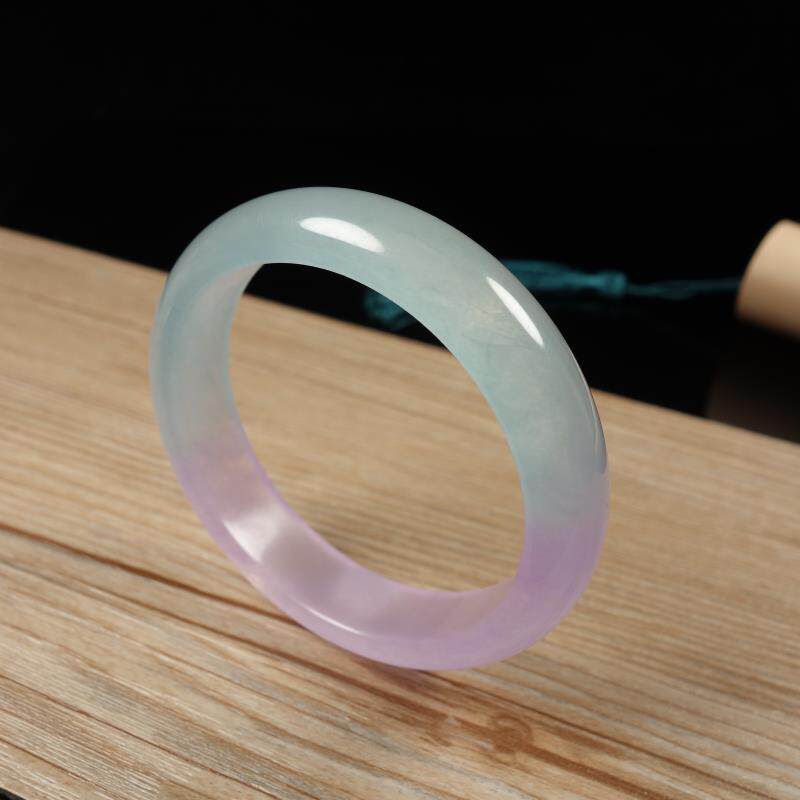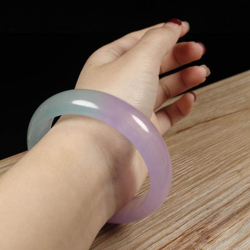 冰透缅甸翡翠半油青翡翠手镯半紫半绿半山水通透手镯石英岩玉女款