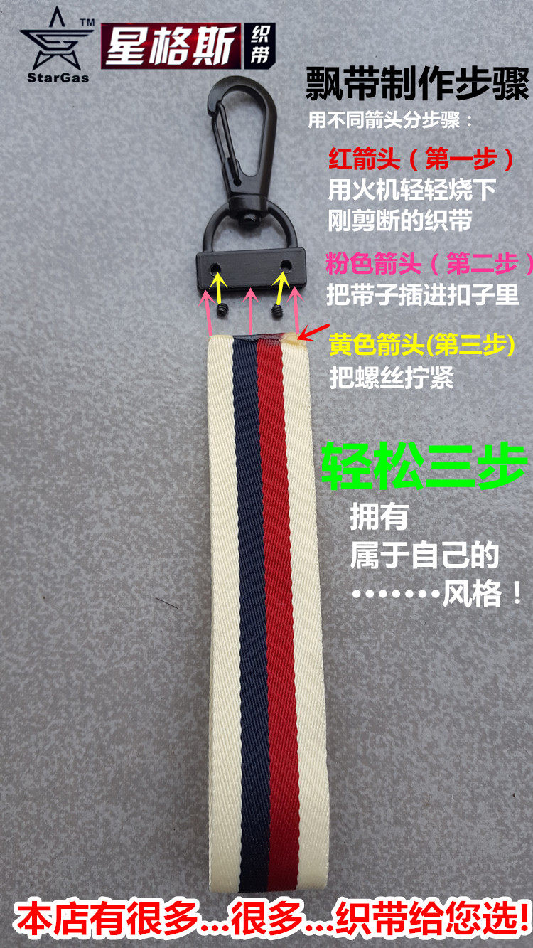 个性拉链头挂扣印字母飘带表层涂胶膜时尚配件钥匙挂扣织带专用的