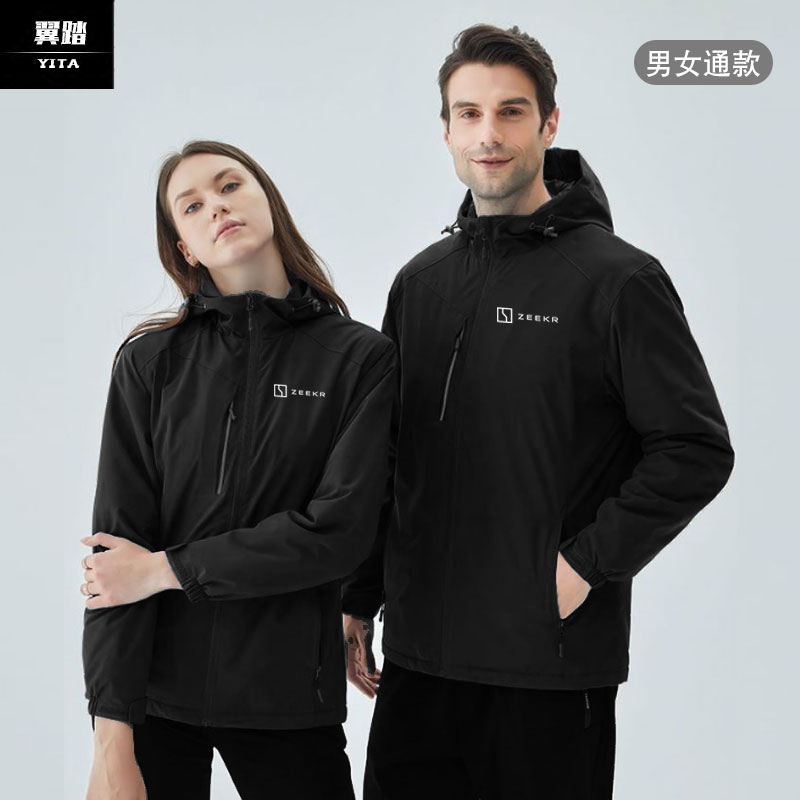 极氪001汽车爱好者4S店领克可定制工作服装冲锋衣男女连帽夹克衫