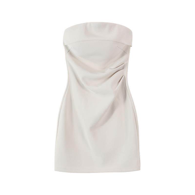 愉悦愉悦 收腰抹胸白色连衣裙女夏季绝美性感法式气质吊带包臀裙