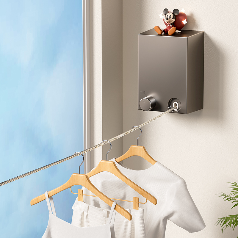 隐形晾衣绳伸缩晾衣服神器室内免打孔卫生间收缩抽拉阳台钢丝绳架