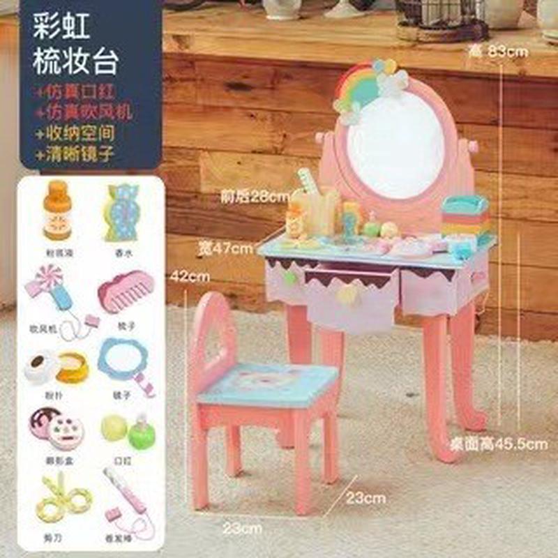 木质仿真女孩饰品化妆桌过家家玩具粉色公主梳妆台儿童互动类玩具