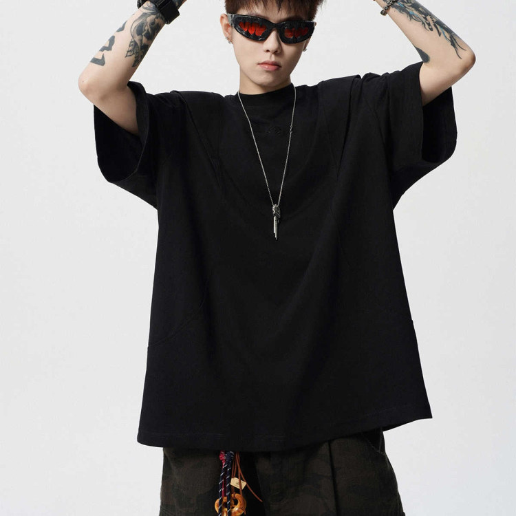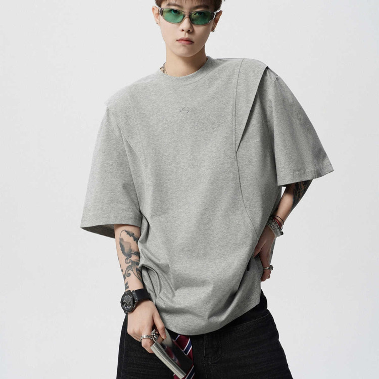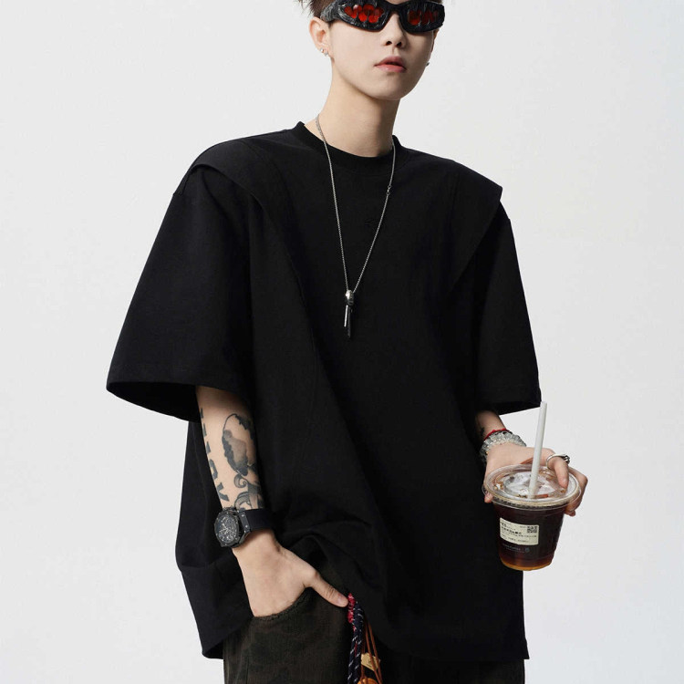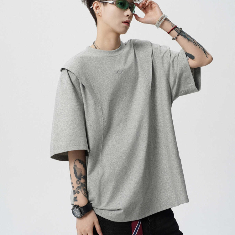 活页剪裁短袖T恤男夏美式高街解构圆领套头衫潮牌设计感宽松体恤