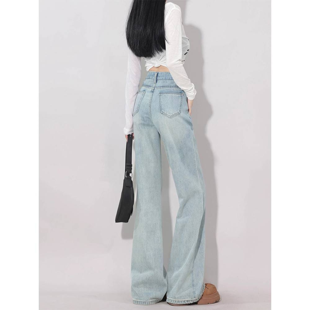 通勤垂感高腰微喇牛仔裤女春季2025年新款宽松浅色不贴腿喇叭裤子