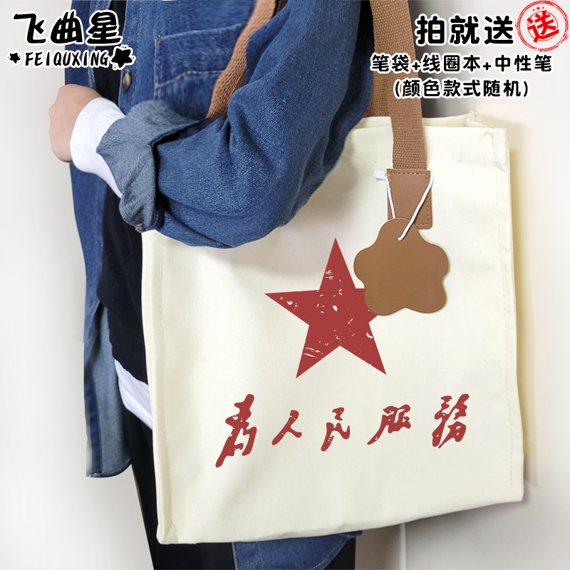 爱国为人民服务中国青年励志帆布包手提学生书包单肩背包补习袋子