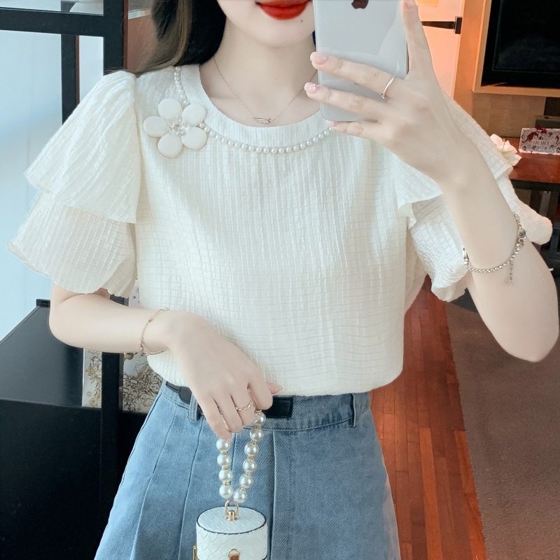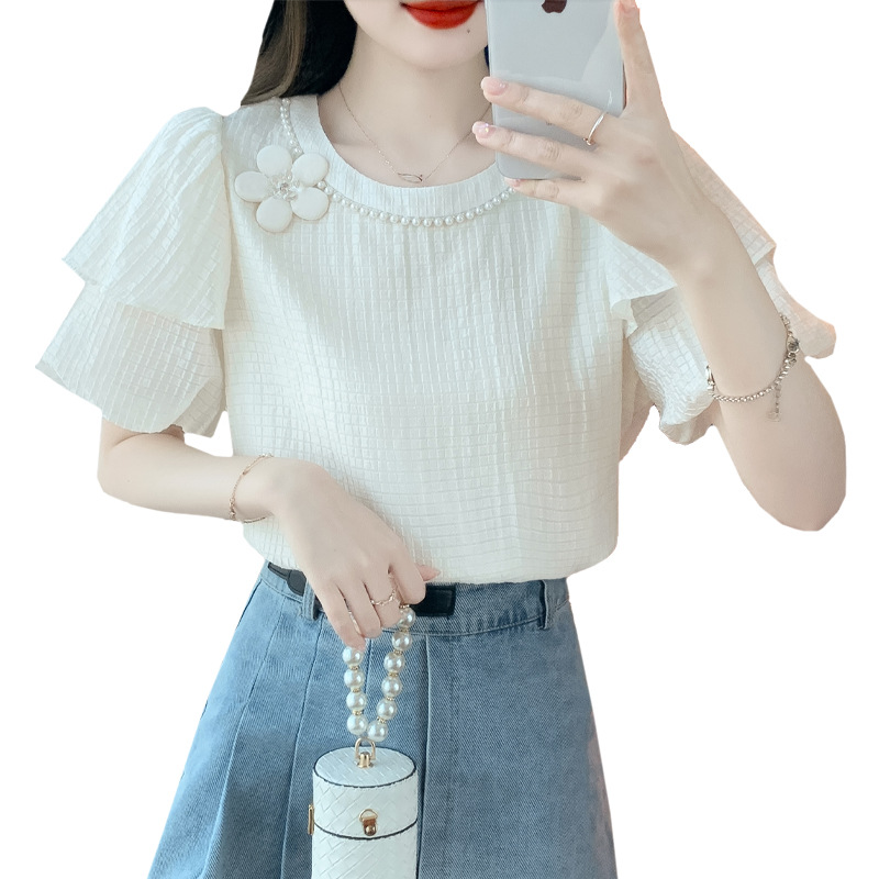 雪纺衬衫高级感上衣女士t恤短袖衣服新款女款爆款夏装季通勤女装