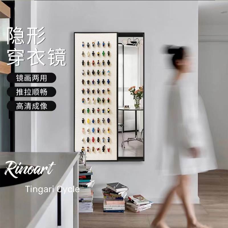 隐藏式穿衣镜DIY积木公仔全身镜入户门口镜子推拉隐形全身镜装饰