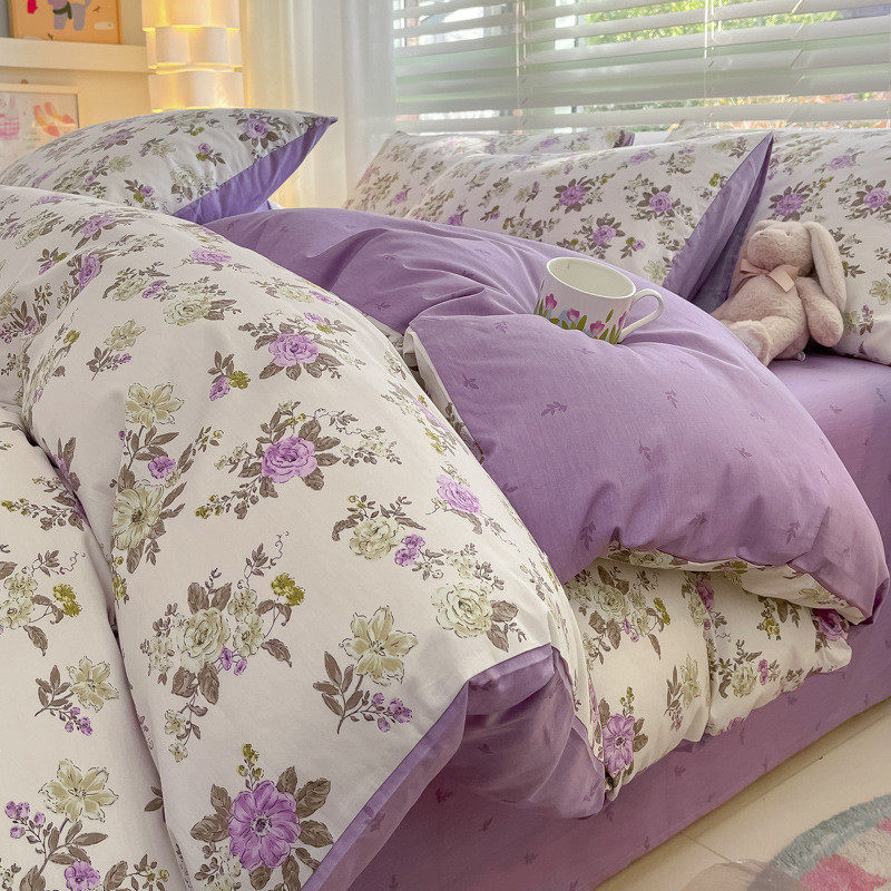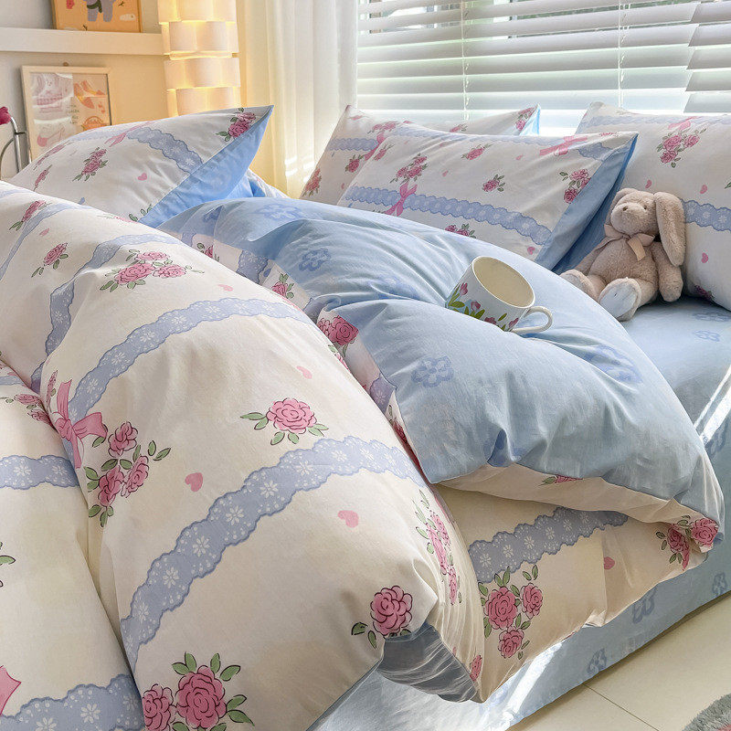批发ins小清新儿童公主棉四件套少女心床风棉斜纹4件套卡通品