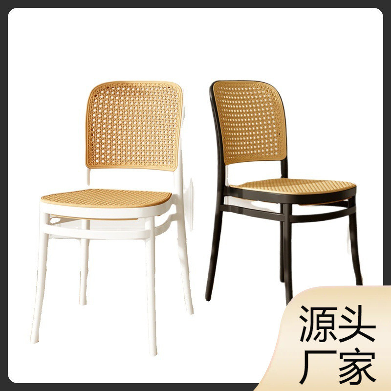 G藤编塑料椅子北欧家用可叠放餐椅户外休闲靠背椅小户型扶手