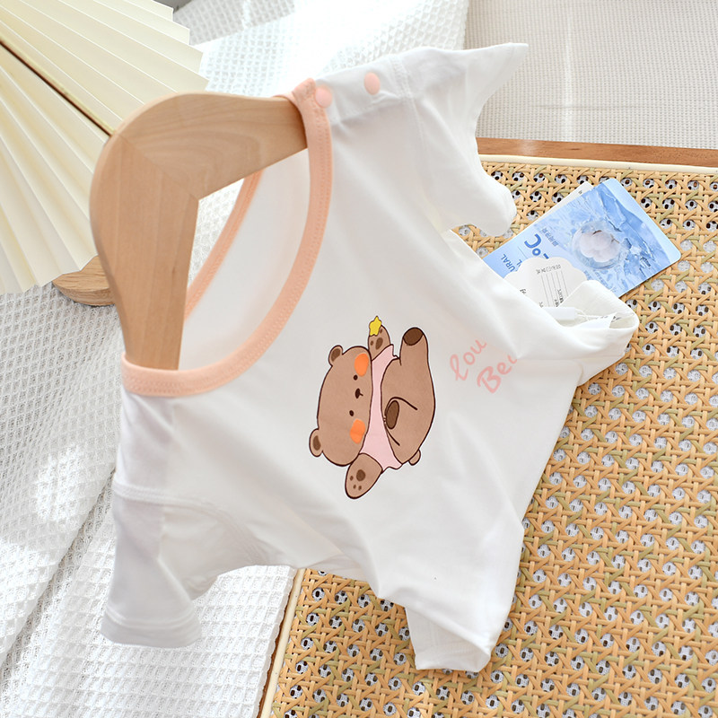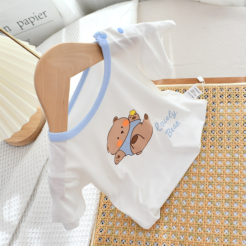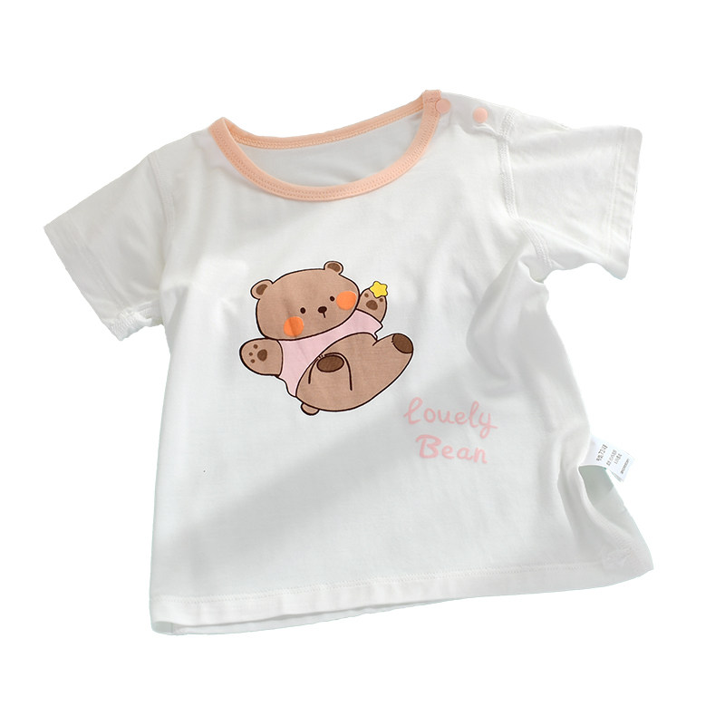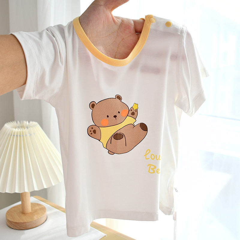 婴儿半袖t袖夏季莫代尔肩扣凉感透气睡衣男女童宝宝薄款短袖上衣
