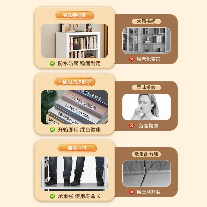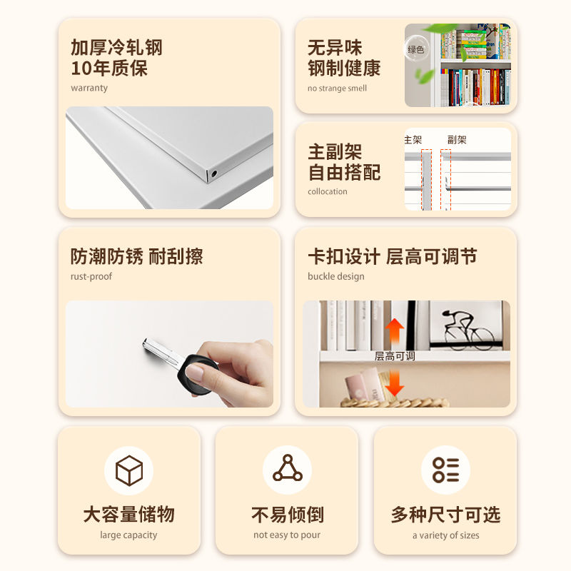 家用图书馆钢制书架一体靠墙客厅儿童铁艺书籍收纳书柜落地置物架