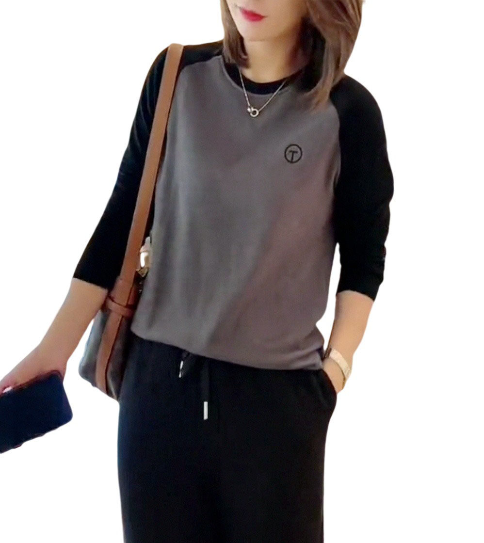 2023冬季新款长袖双面德绒T恤打底衫女修身百搭加厚保暖拼色上衣