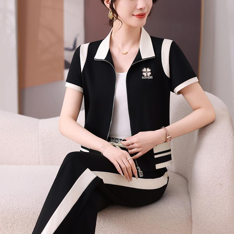 运步休闲动套装女夏季新款薄款短袖长跑裤冰大丝90620665码夏装两