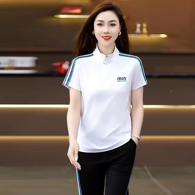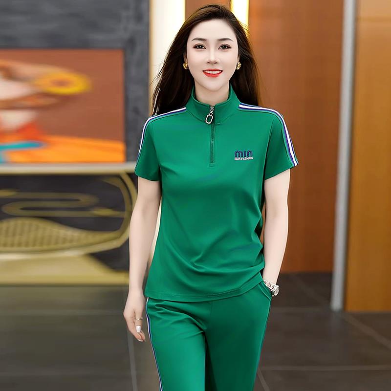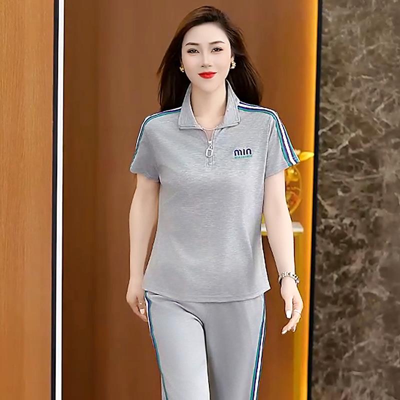 冰丝90580655闲运动套装夏季薄女短袖跑步新款春秋妈款妈夏装两件