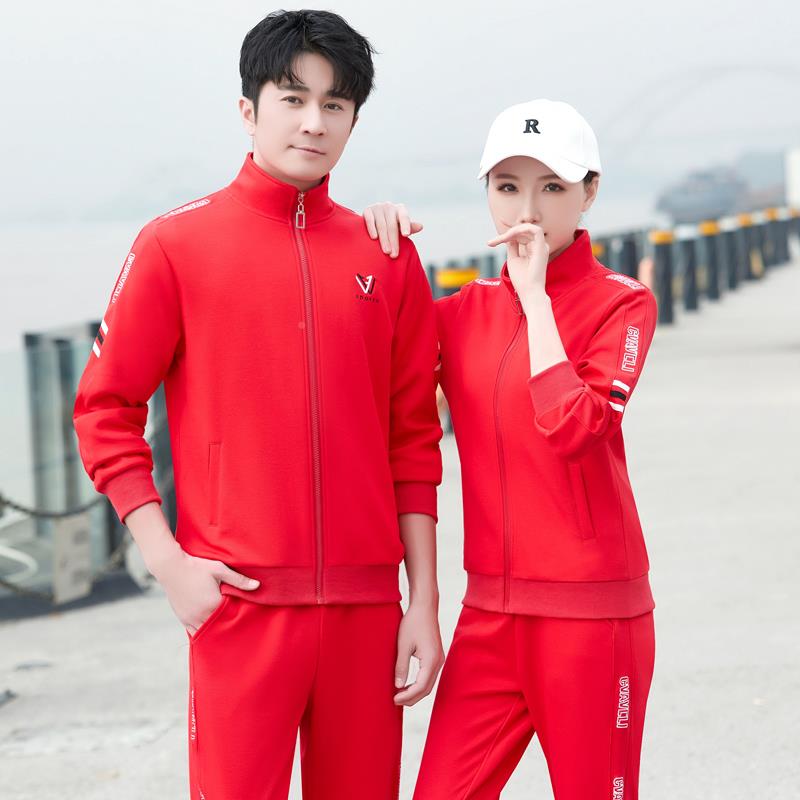 诺春秋休闲红色侣装运套7604670动装女团购大码情男长袖跑步服两