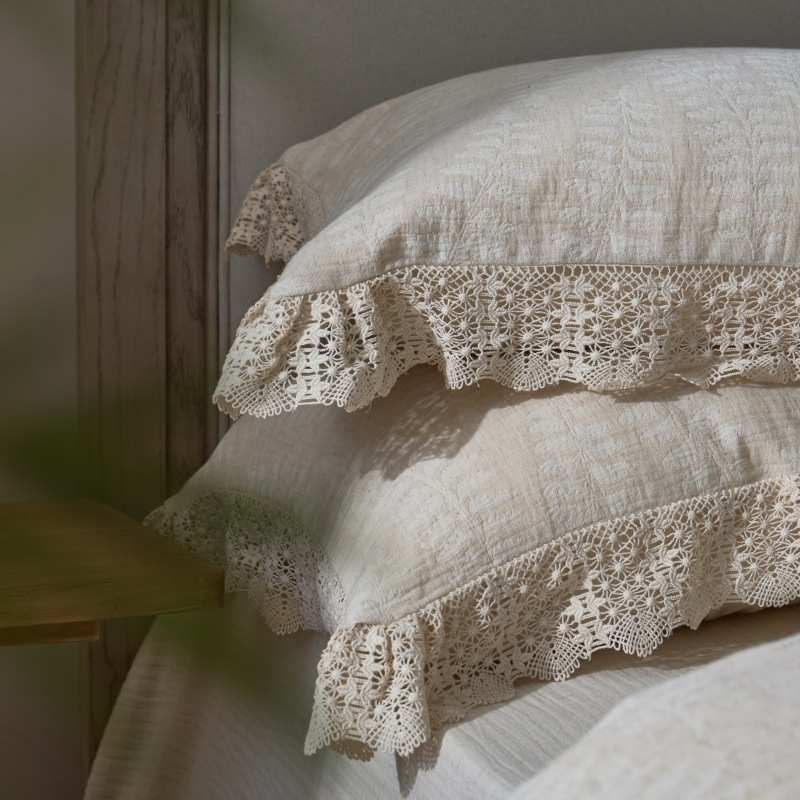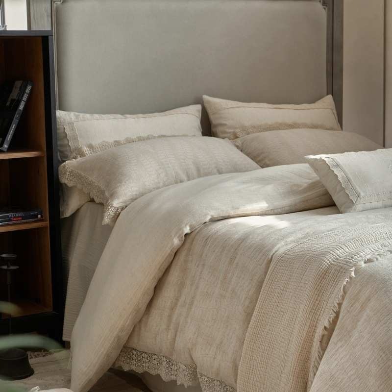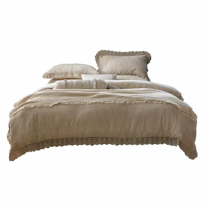 寂被套床法式纱亲侘三件套风四笠件套花边肤床单复古三层提花棉麻