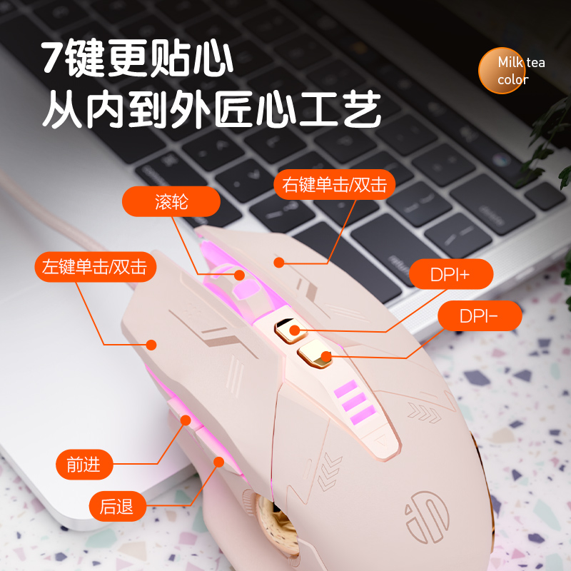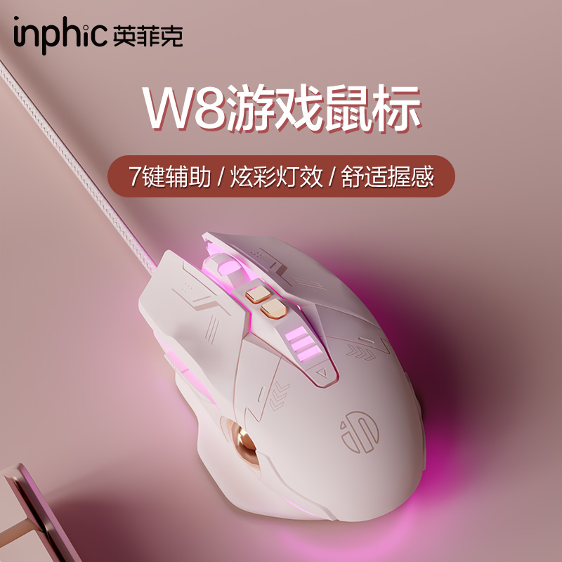 英菲克W8有线鼠静音办公电竞游戏适用联想笔记本华硕华为电脑