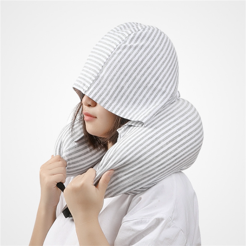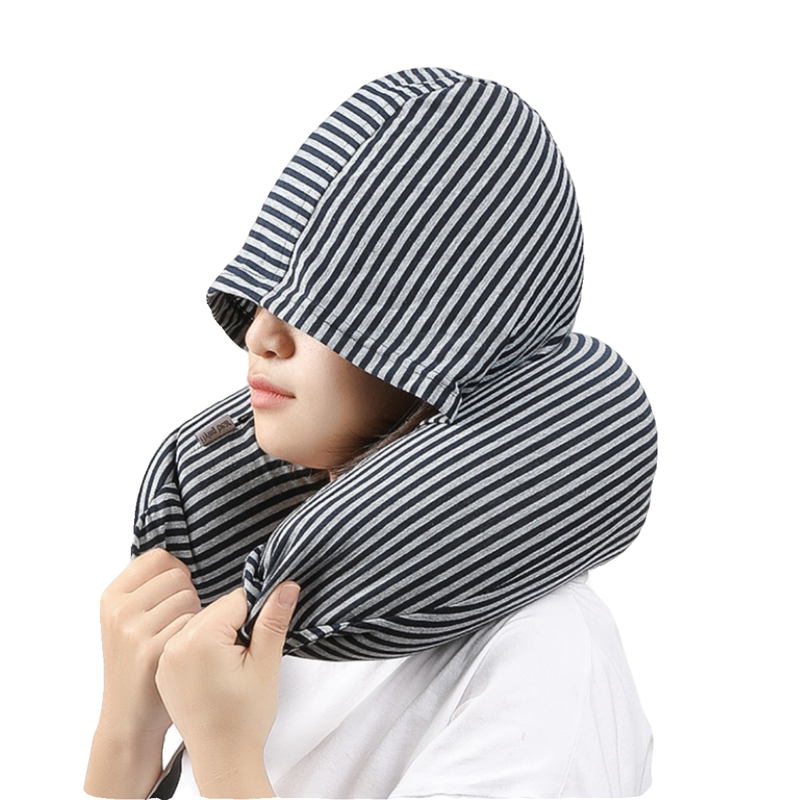 印MUJ带帽u型枕护颈枕泡沫粒子可拆洗连帽飞机枕旅行枕u形枕头.