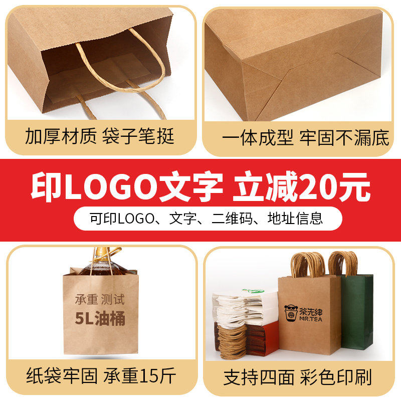 牛皮纸袋礼品袋包装红色手提袋定制印刷logo烘焙奶茶外卖打包