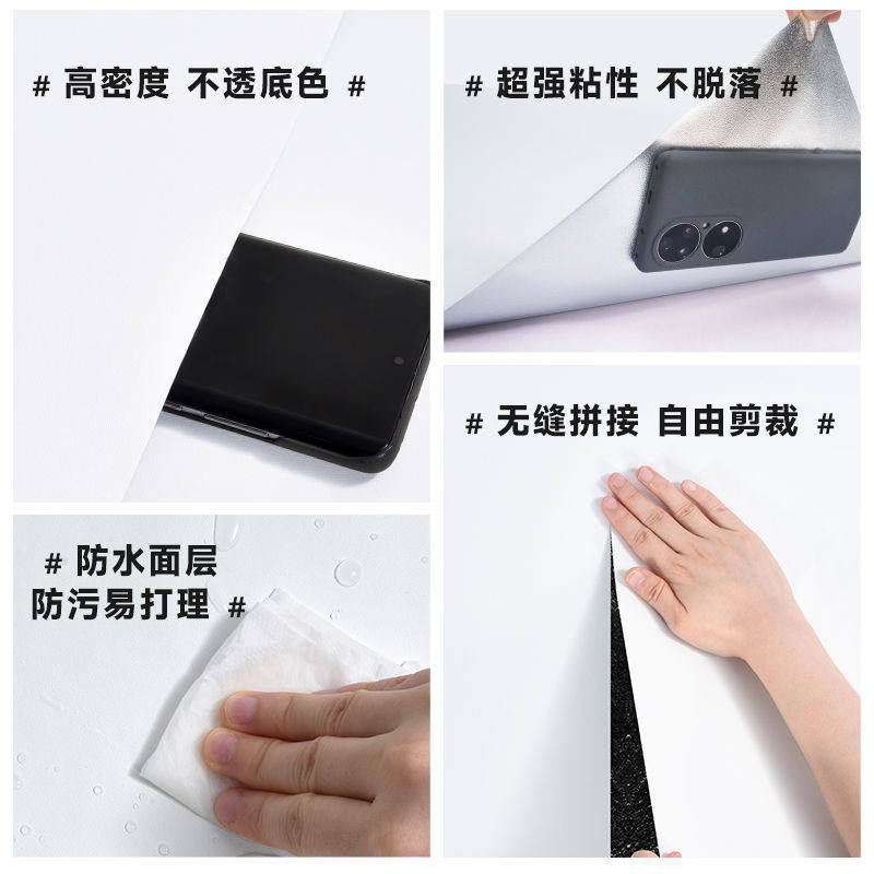 纯白色自粘墙纸防水防潮衣柜旧家具翻新壁纸桌面改造家用墙面