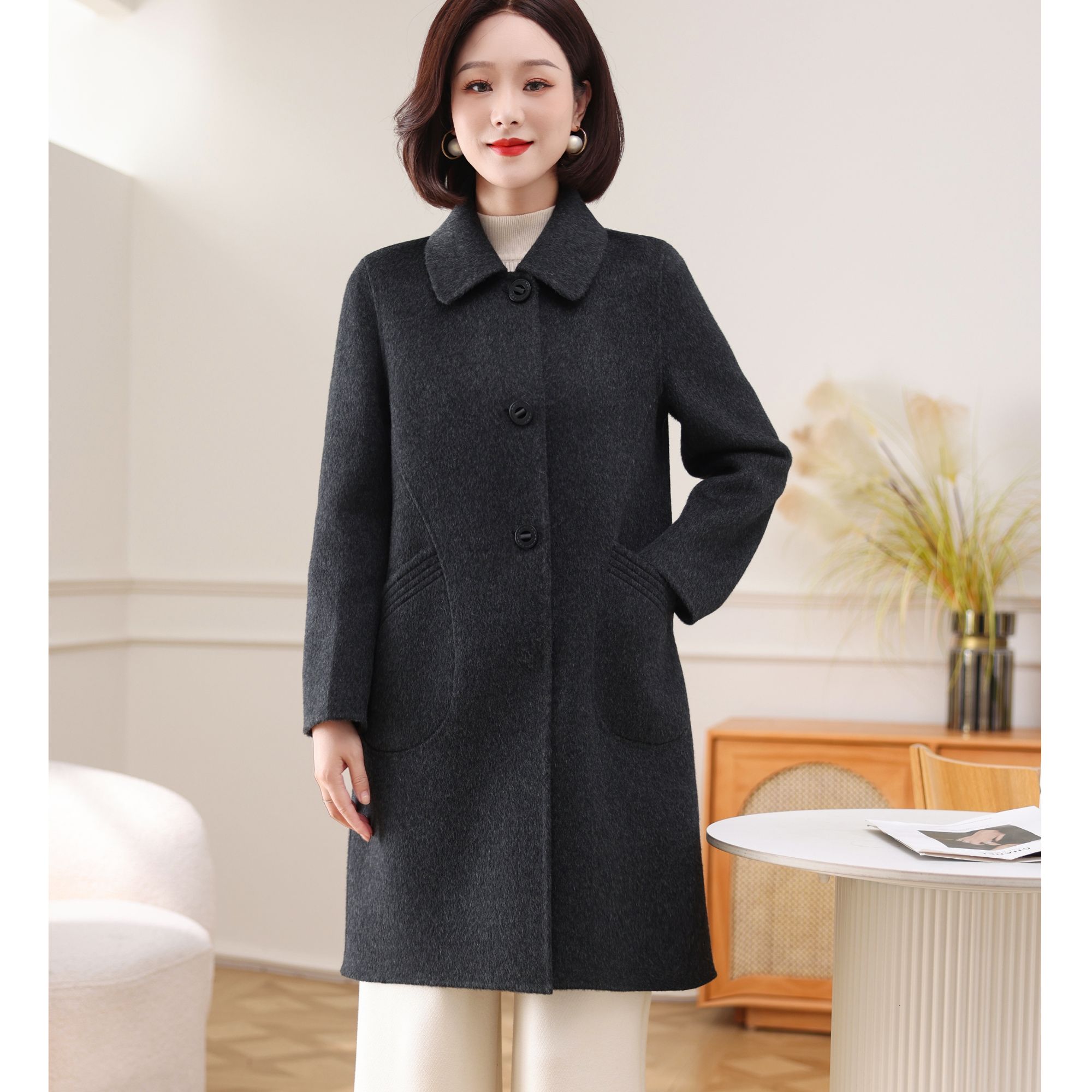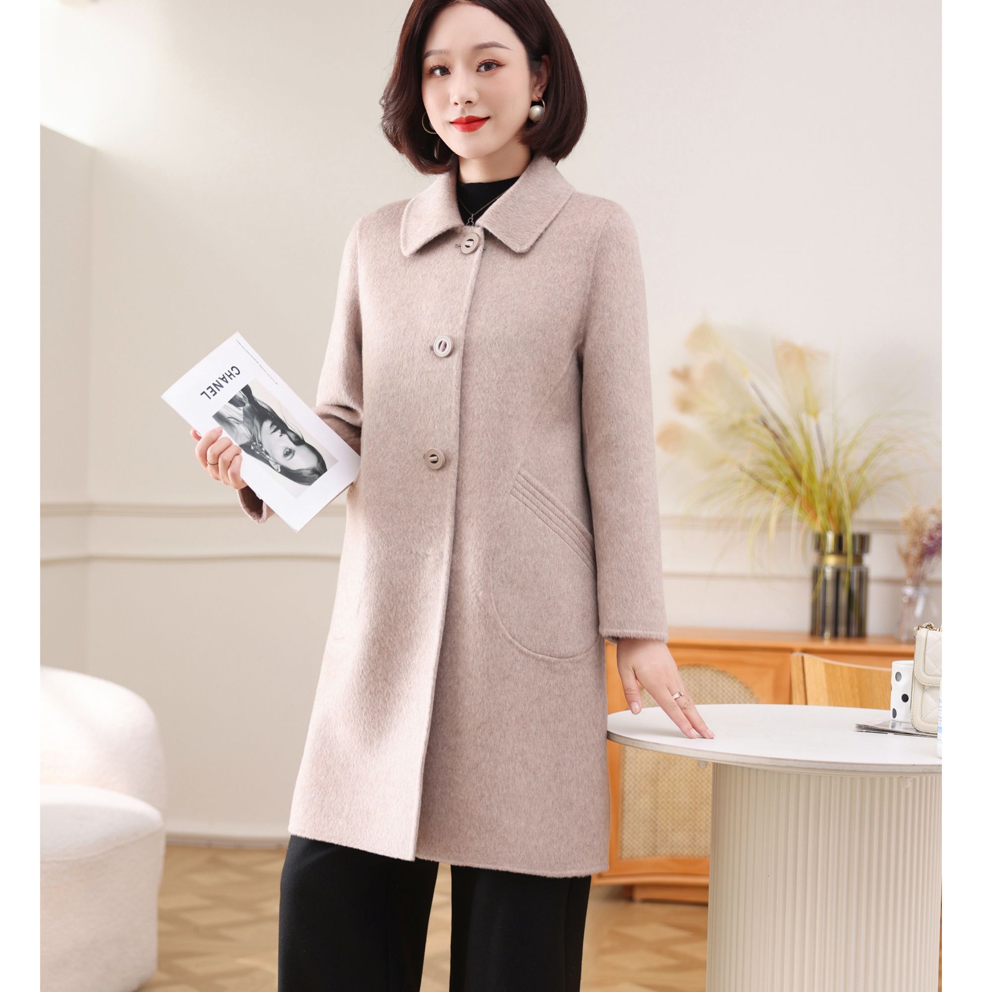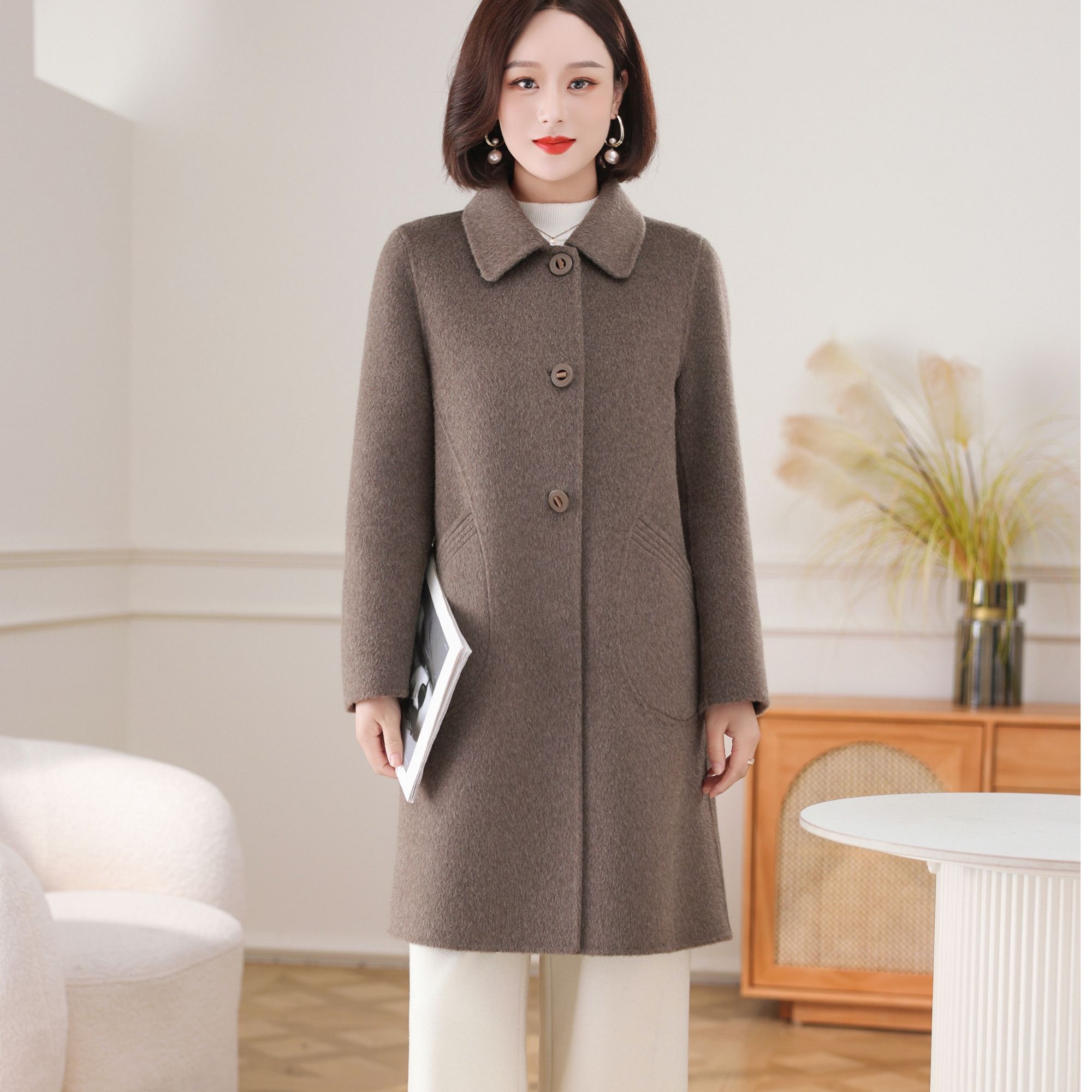 孜洋骆驼绒高端贵气修身显瘦大衣高奢时尚百搭中长款L5203