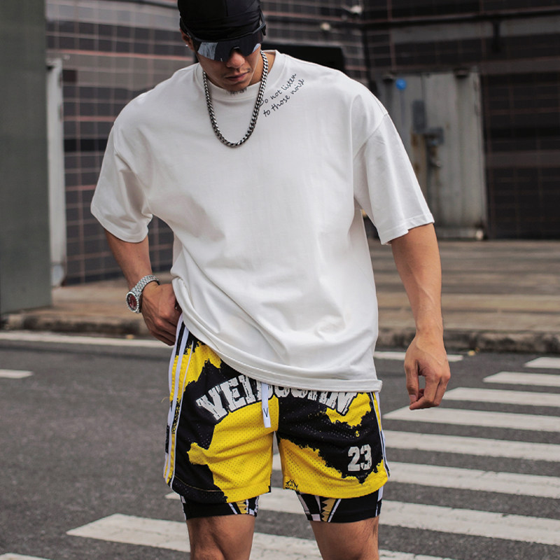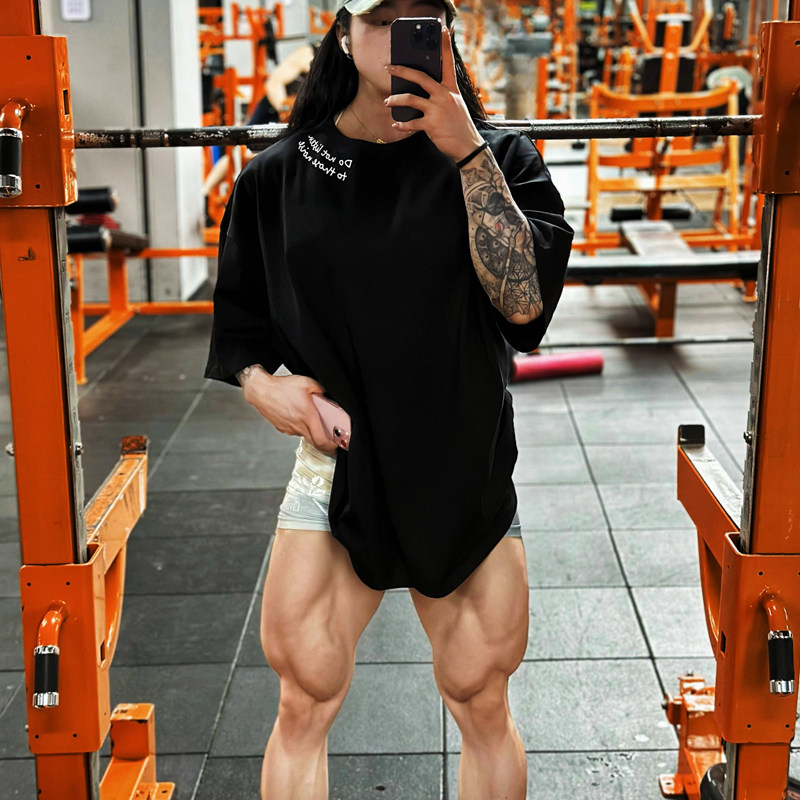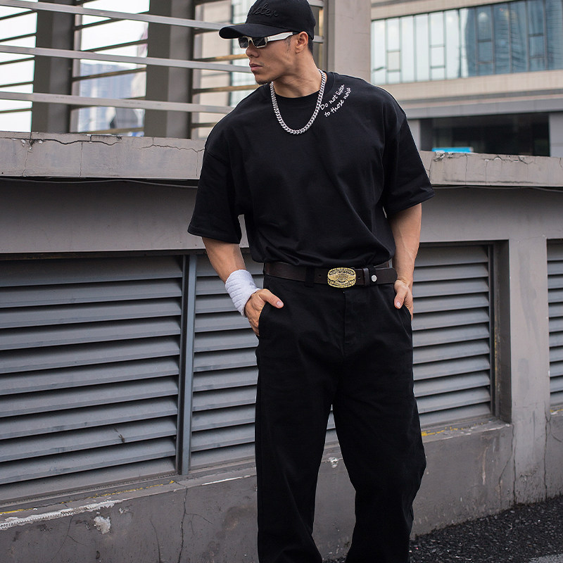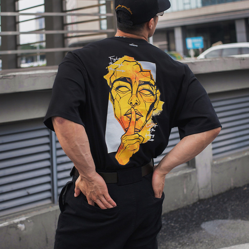 惯性基因"把嘴闭上"运动健身T恤圆领夏季训练美式短袖重磅棉宽松