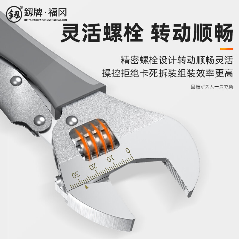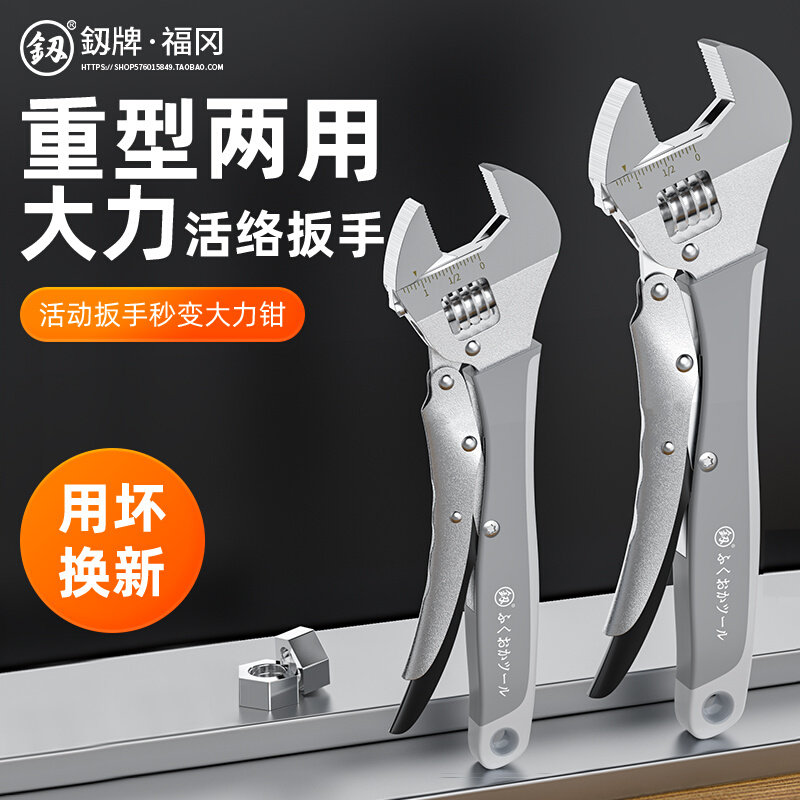 。福冈活动扳手大力钳大开口多功能活口万能扳手工具短柄万用小板