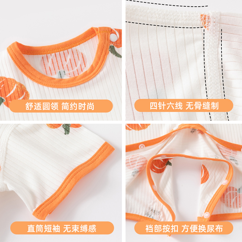 宝宝夏季薄款短袖长裤连体衣男婴儿莫代尔睡衣空调家居服爬服哈衣