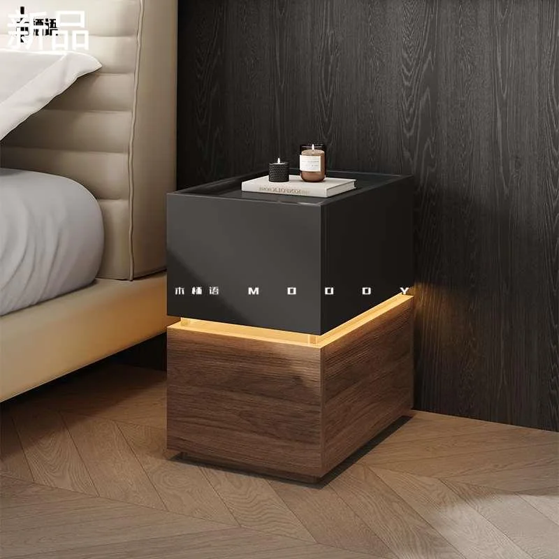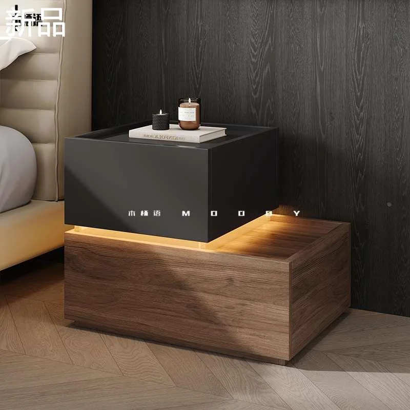 智能床头柜意式简约现代轻奢创意小卧型储物室积木组合带灯床新品