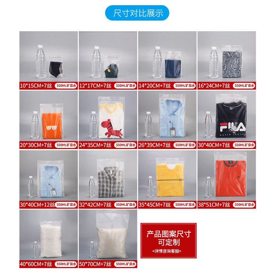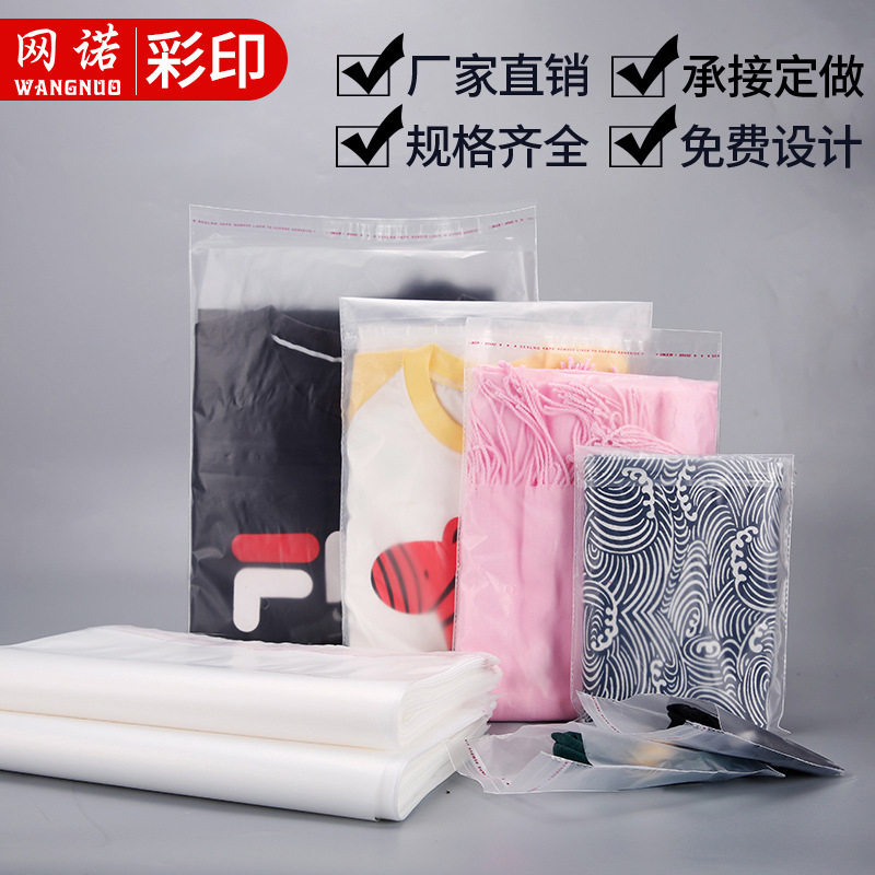 现货OPP自粘袋透明塑料包装袋 印刷LOGO磨砂服装包装袋