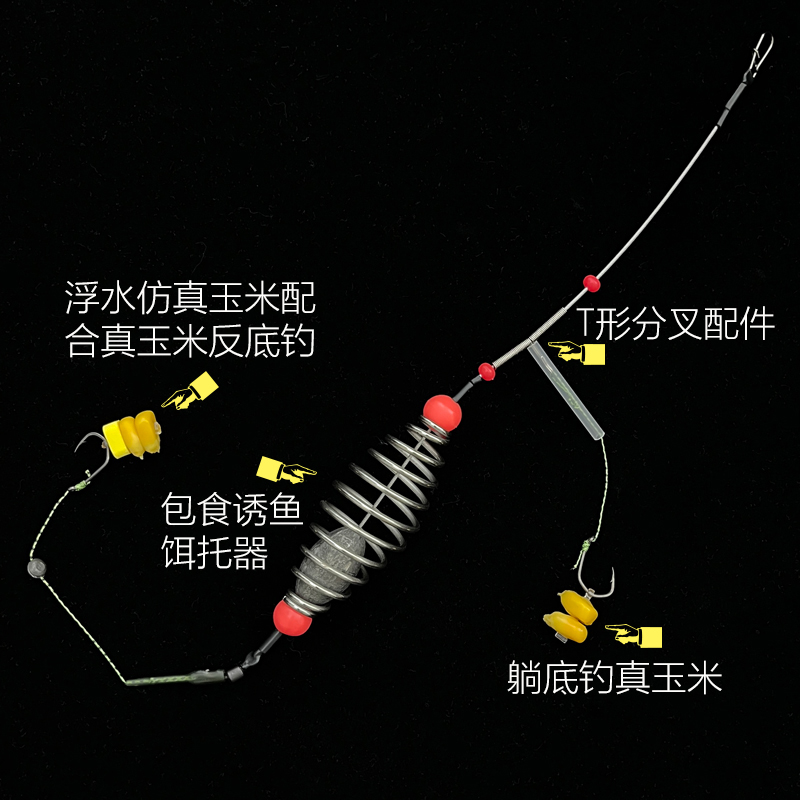 欧鲤钓反底钓法钓组鱼钩一低一浮线组渔具钓鱼装备浮水仿真玉米粒