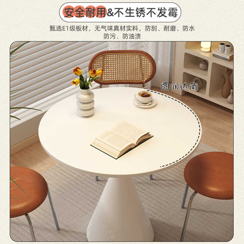 奶油风小圆桌奶茶店会客洽谈桌椅组合桌子餐椅用小公寓租房