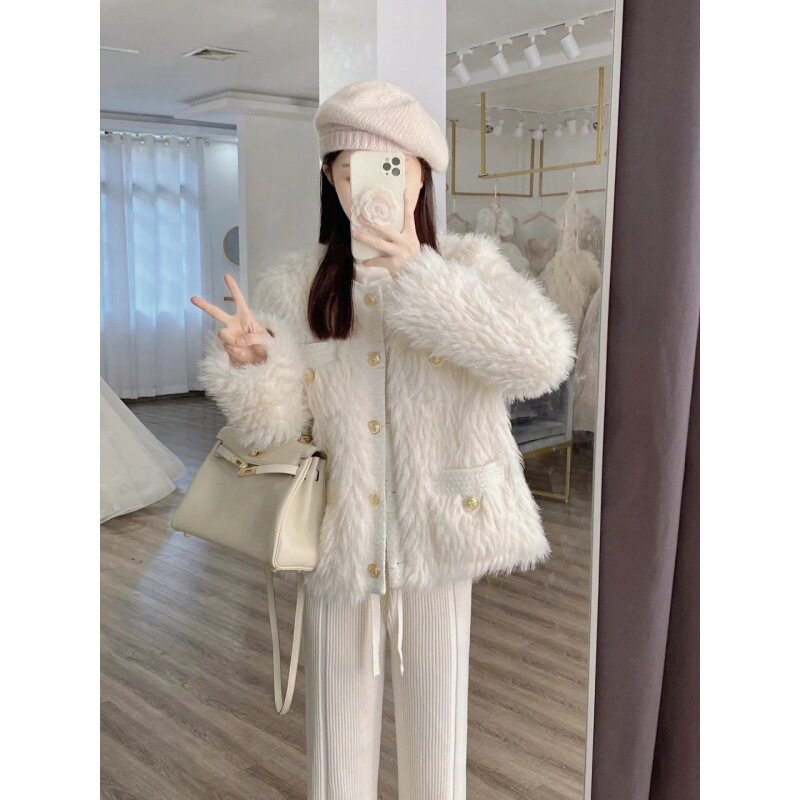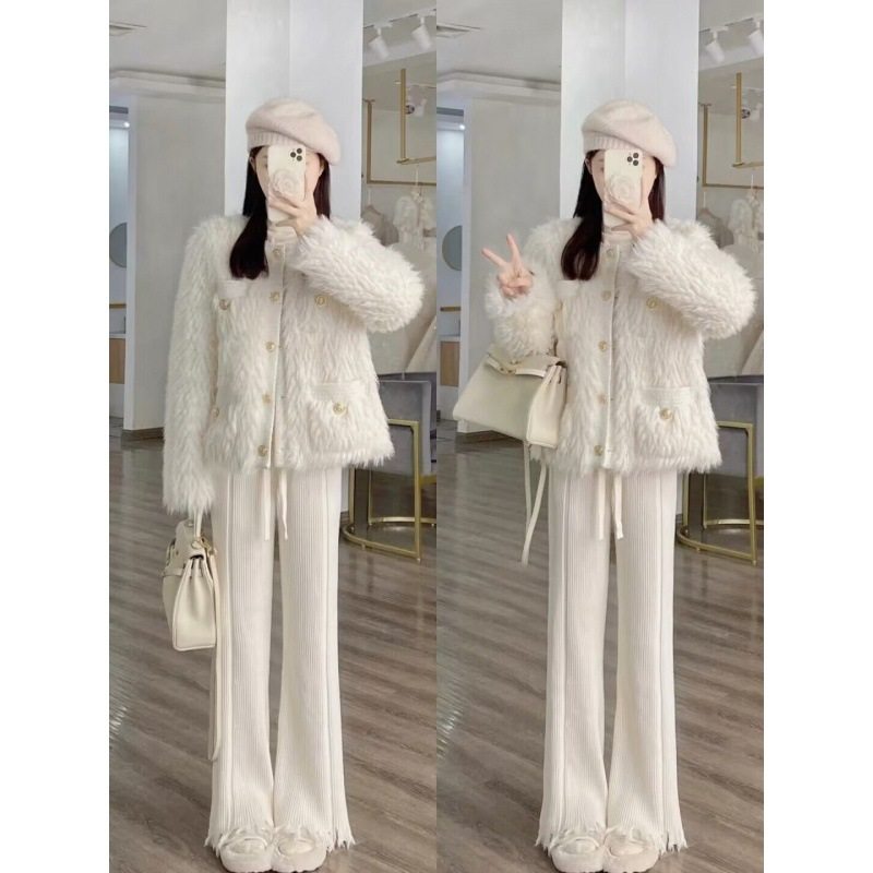 2023秋冬新款狐狸毛皮草外套短款小香风时尚年轻套装