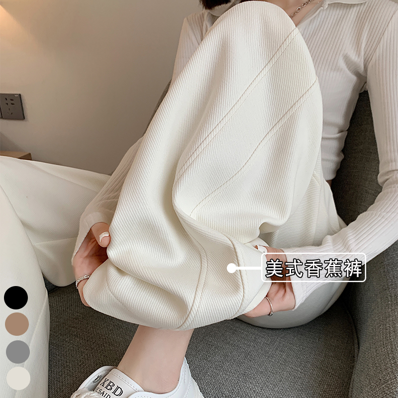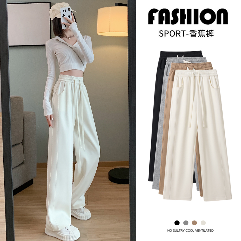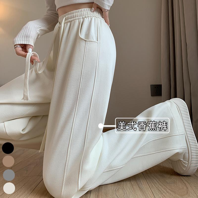 白色运动裤女春秋2024年新款高腰直筒秋冬休闲卫裤加绒香蕉阔腿裤