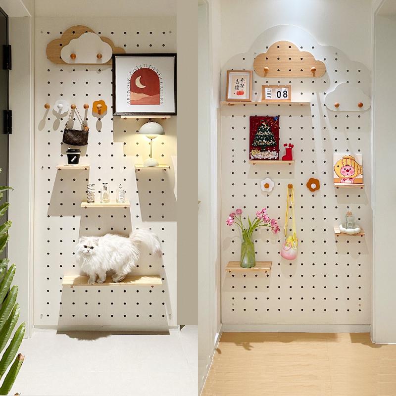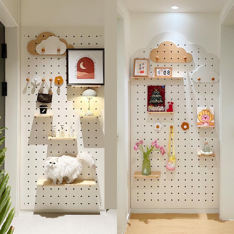 玄关洞洞板定制置物架木质展示收纳墙云朵收纳架墙上挂衣架