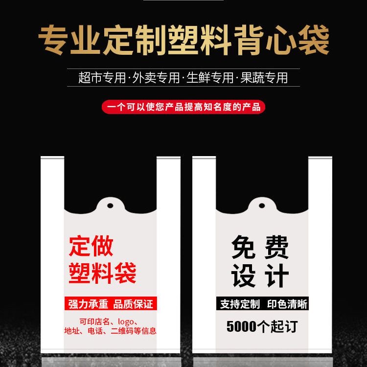 塑料袋2000条定做印刷logo超市购物塑料背心袋外卖打包食品塑料袋