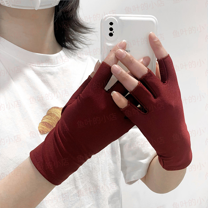半指手套薄款触屏冰丝防晒采摘茶露二指骑行开车户外出游防护春夏