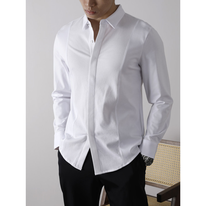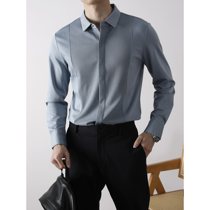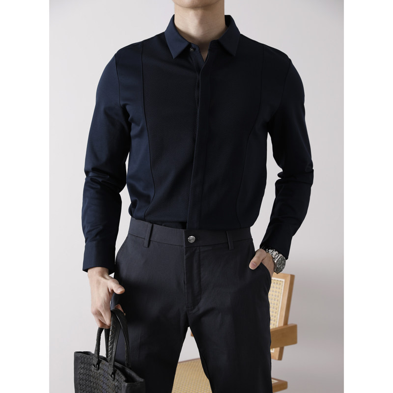 诺必达 雅痞绅士法式拼接男士商务休闲衬衫 四季通勤款