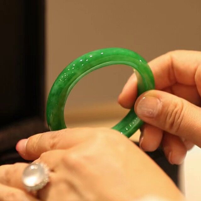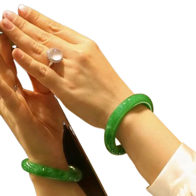 翡翠手镯子冰糯种阳绿翠绿贵妃飘绿正圈春彩女款缅甸老坑玉石