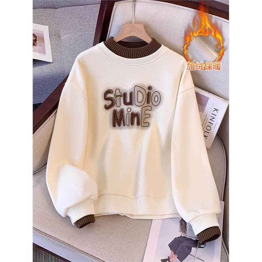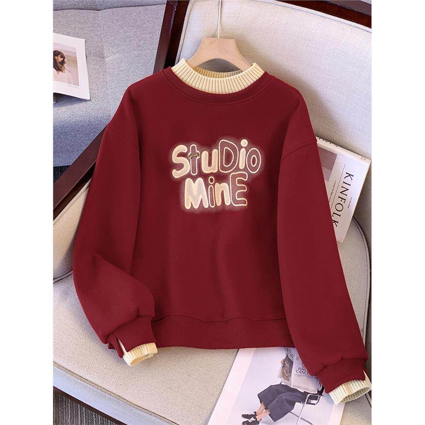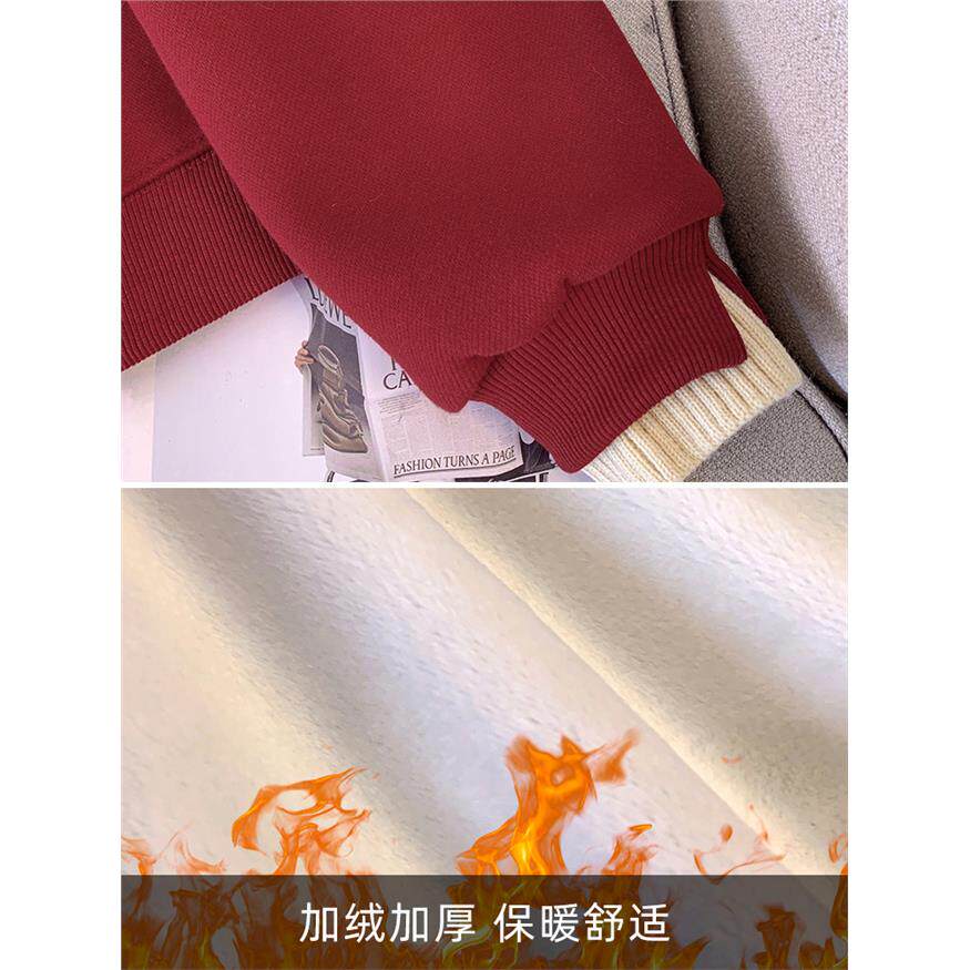 红色加绒卫衣女士新款2025爆款时尚洋气小个子秋冬季加厚圆领上衣