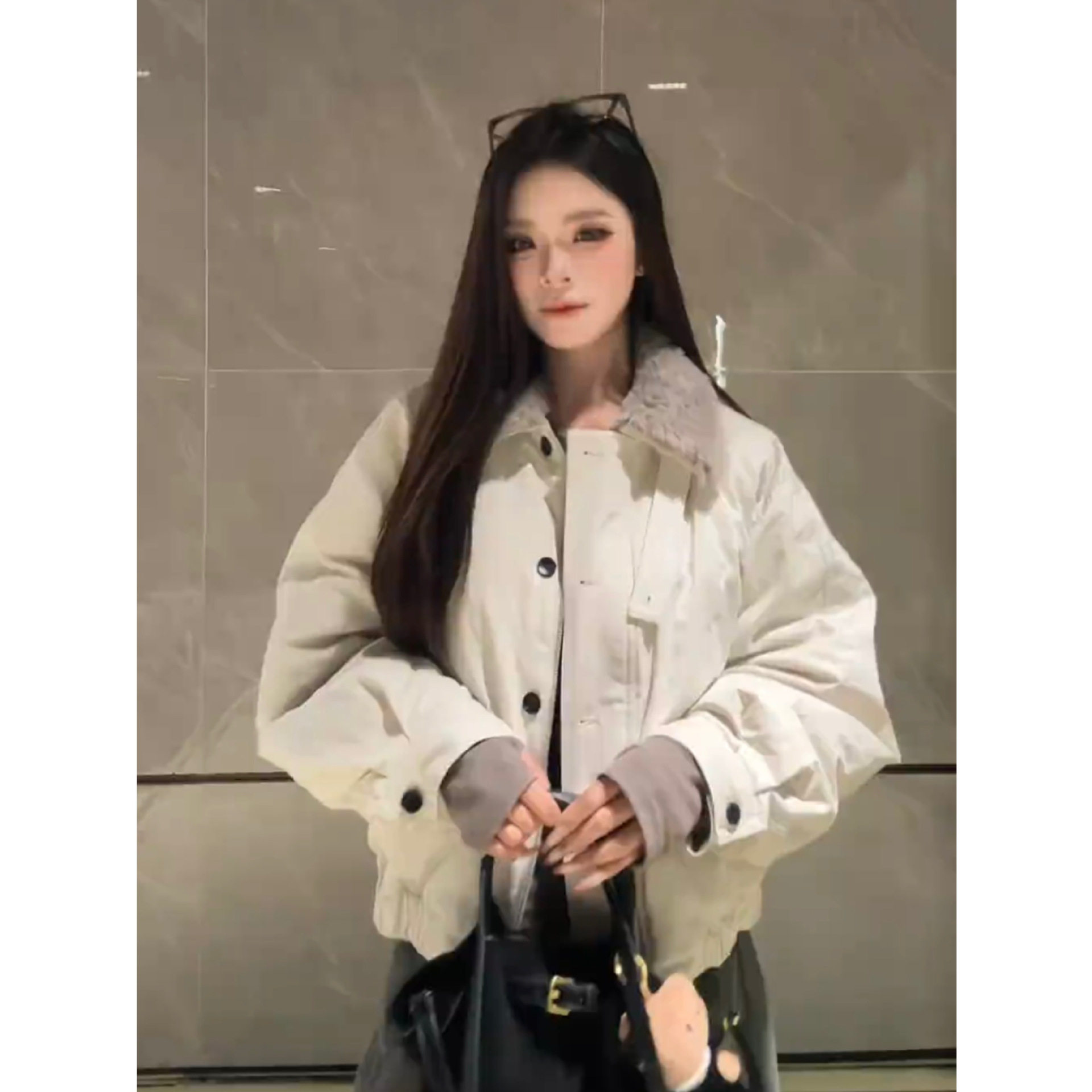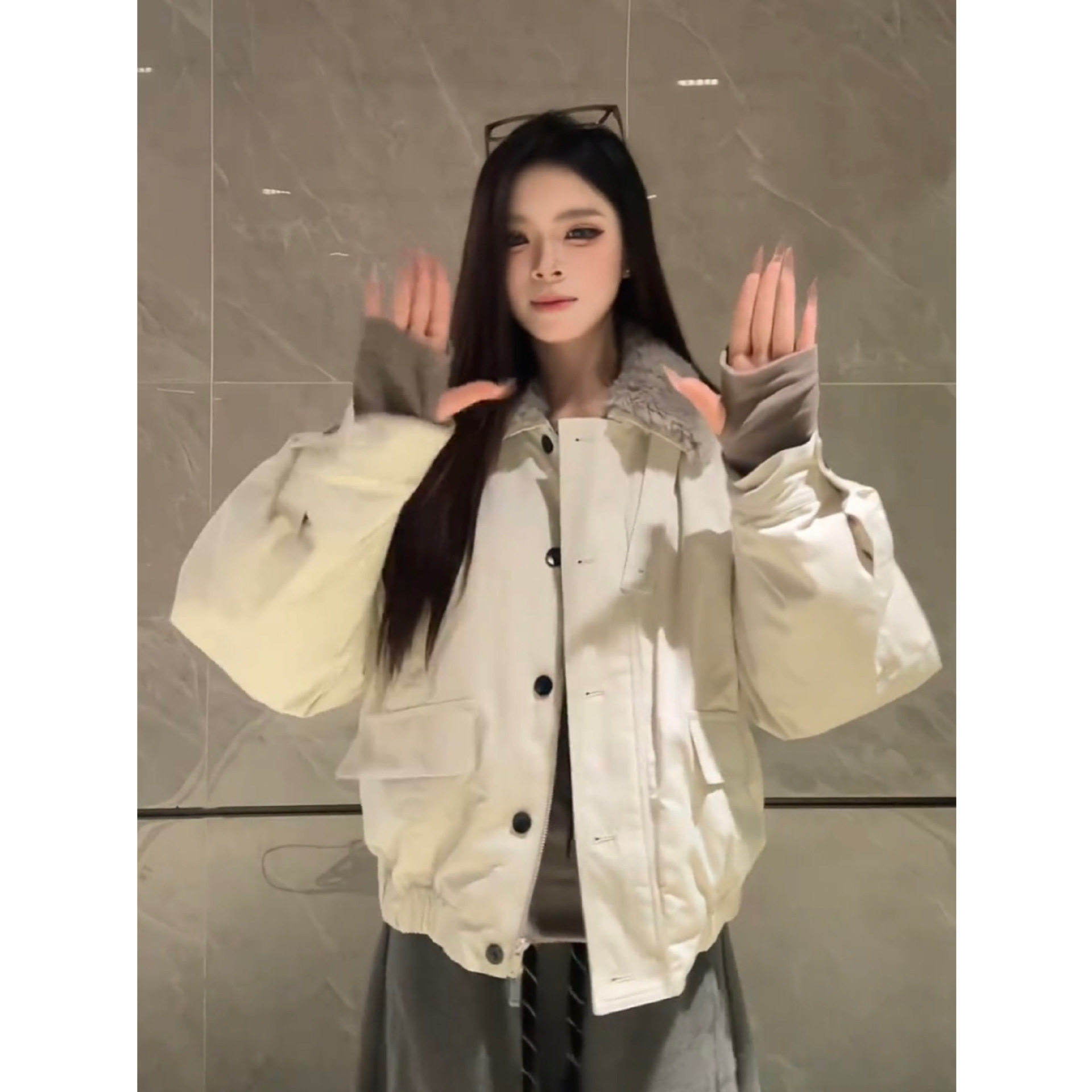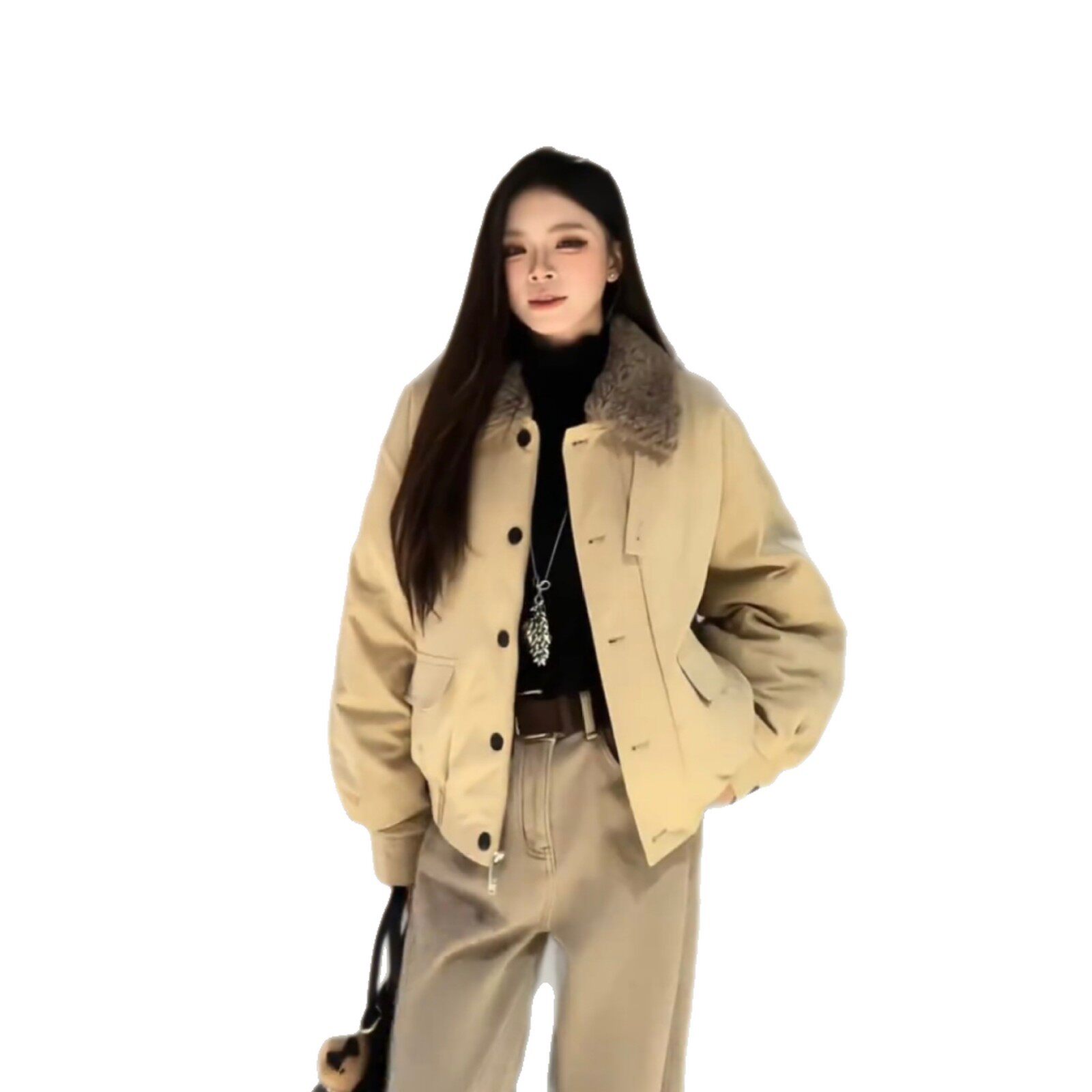 拼接羊羔毛加厚保暖派克棉服短外套女冬季新款时尚减龄修身显瘦