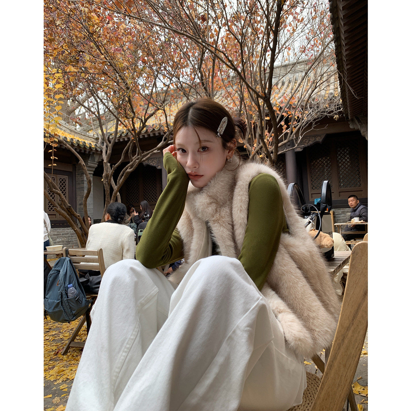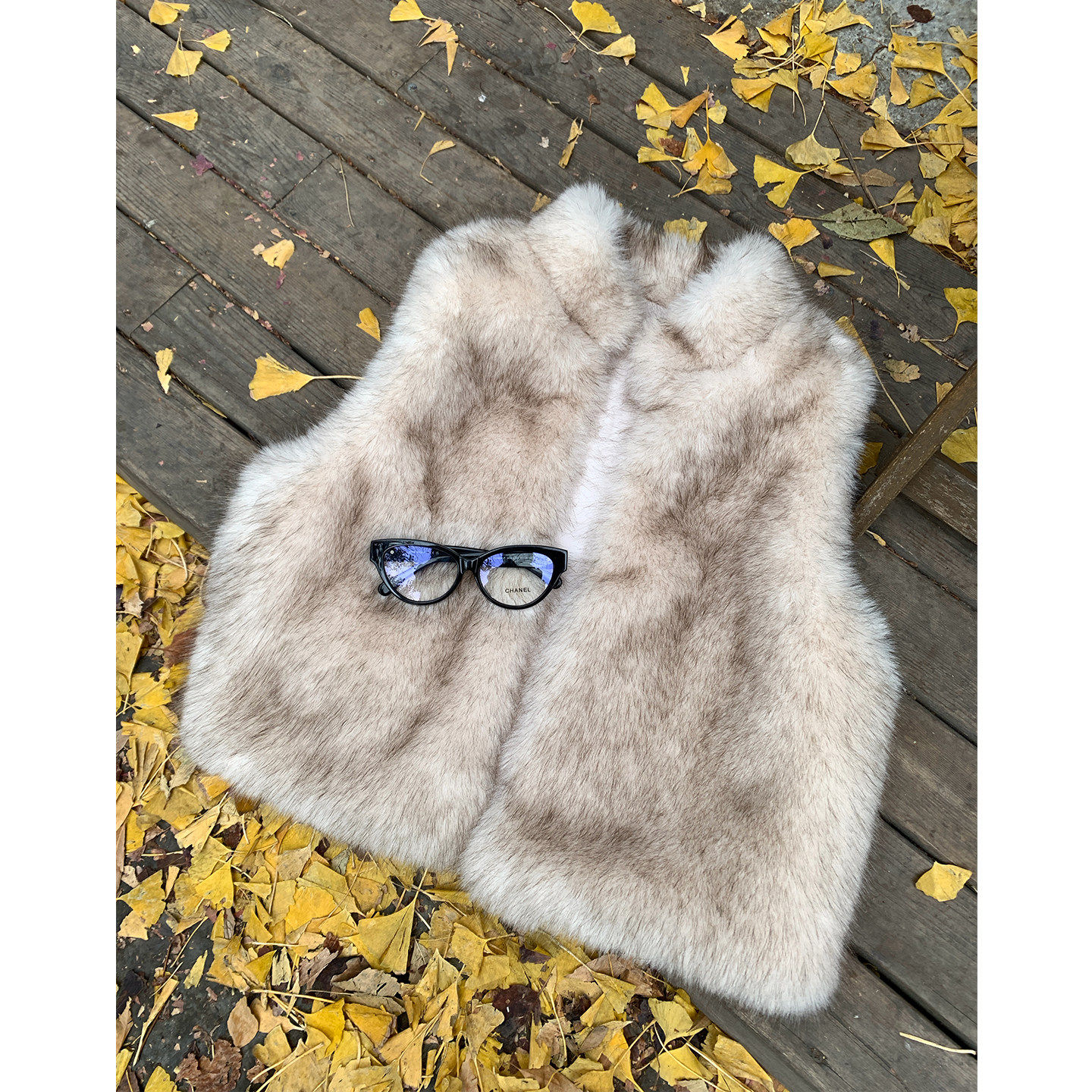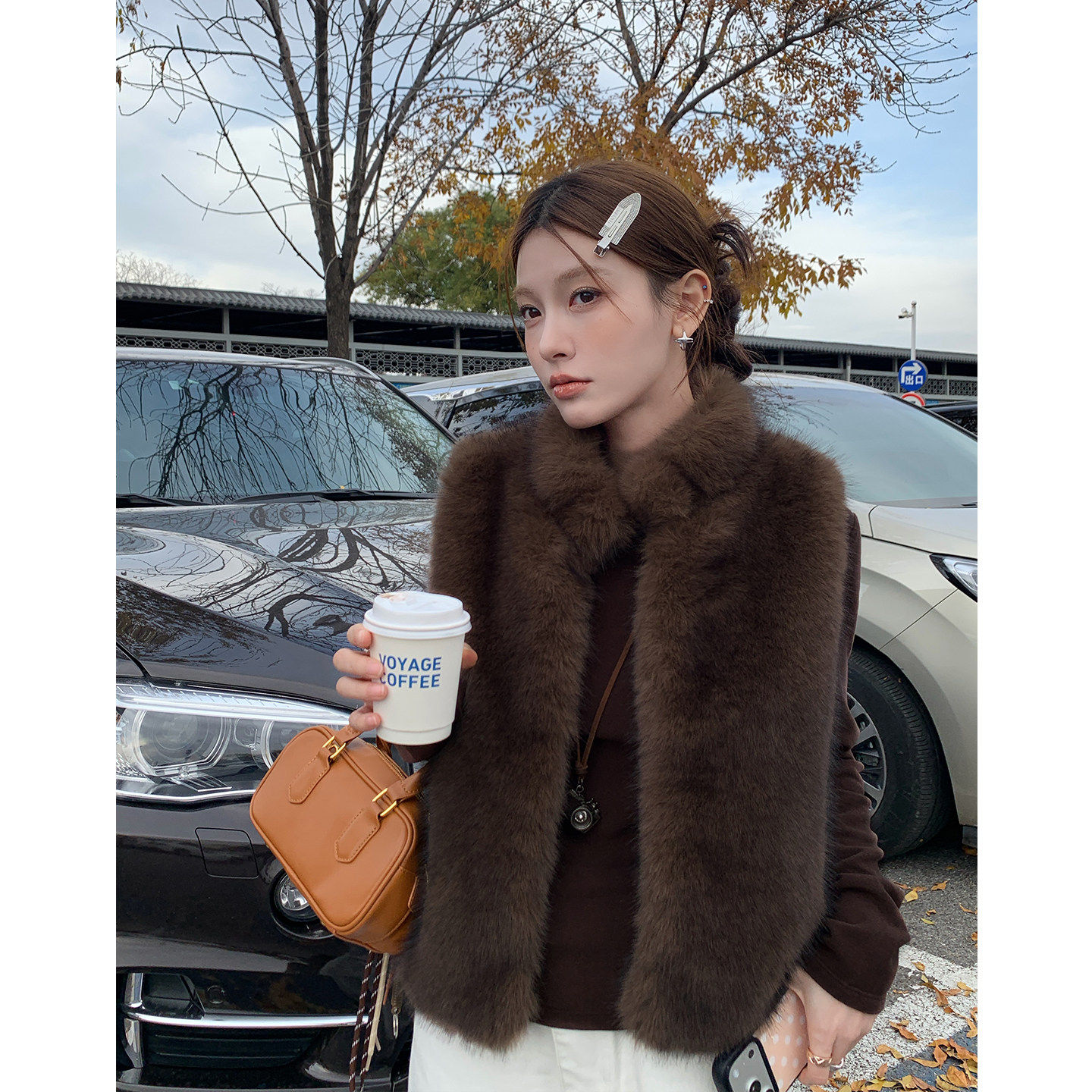 HAMYIHO 环保皮草皮毛一体毛毛马甲女毛茸茸冬季外套短款无袖上衣