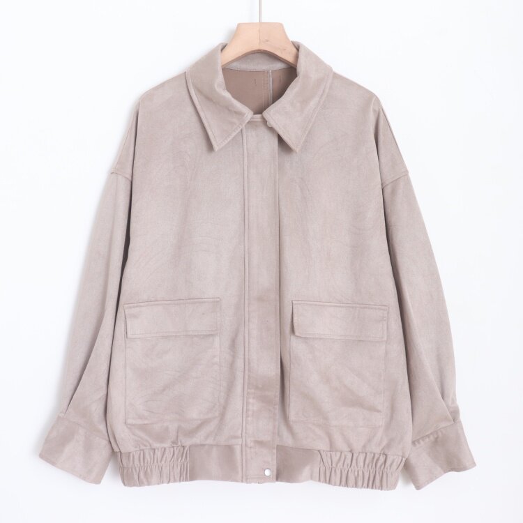 首页> 女装> D17032日单新款按扣拉链翻边领宽松显瘦好搭配女纯色通勤休闲外套
