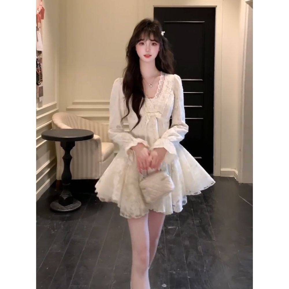 首页> 女装> 世家千金 秋冬新款日系清楚系大小姐设计感收腰显瘦白月光连衣裙