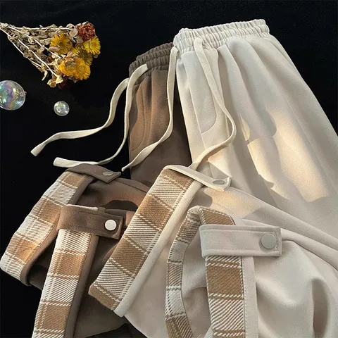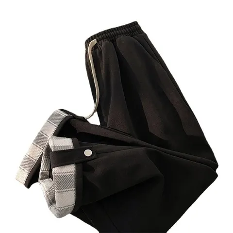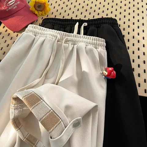 设计感阔腿裤裤子直筒潮百搭翻边休闲2024新款女秋季宽松日系