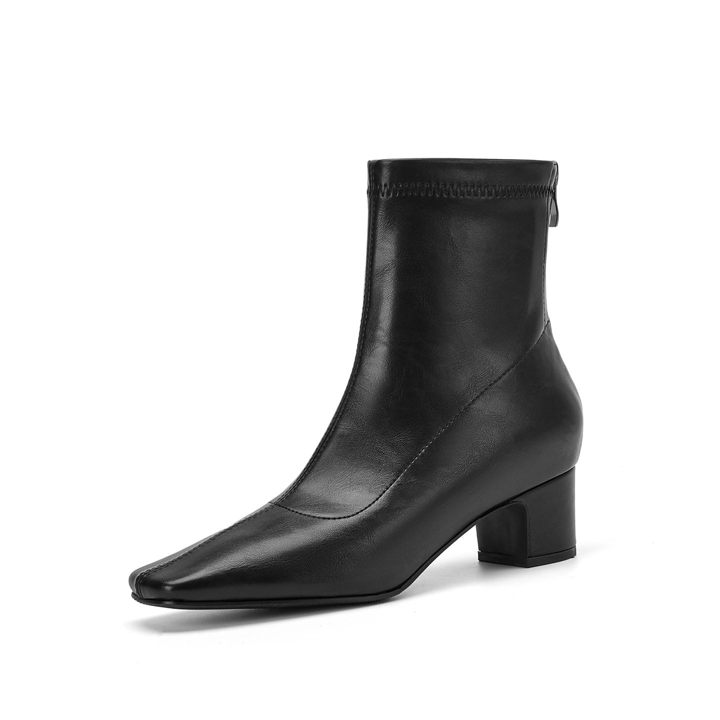 不累脚女靴~5cm粗跟短靴女方头弹力瘦瘦靴舒适百搭后拉链短筒靴子