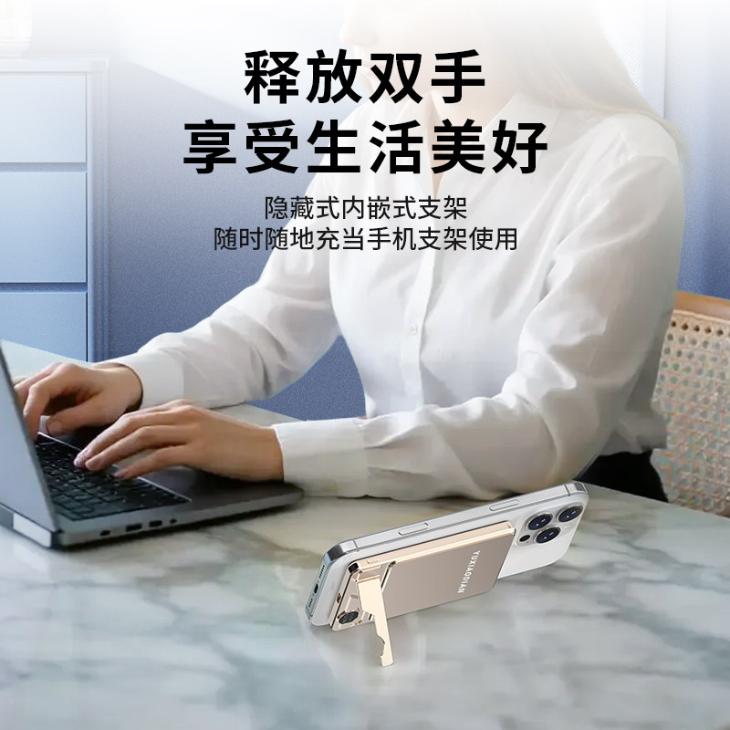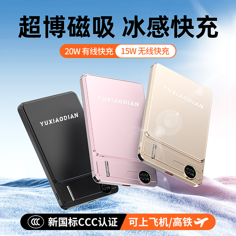 娱小电3C认证充电宝超薄折叠上飞机支架磁吸适用于苹果弹窗qi2外接电池手表充耳机无线快充magsafe移动电源PD
