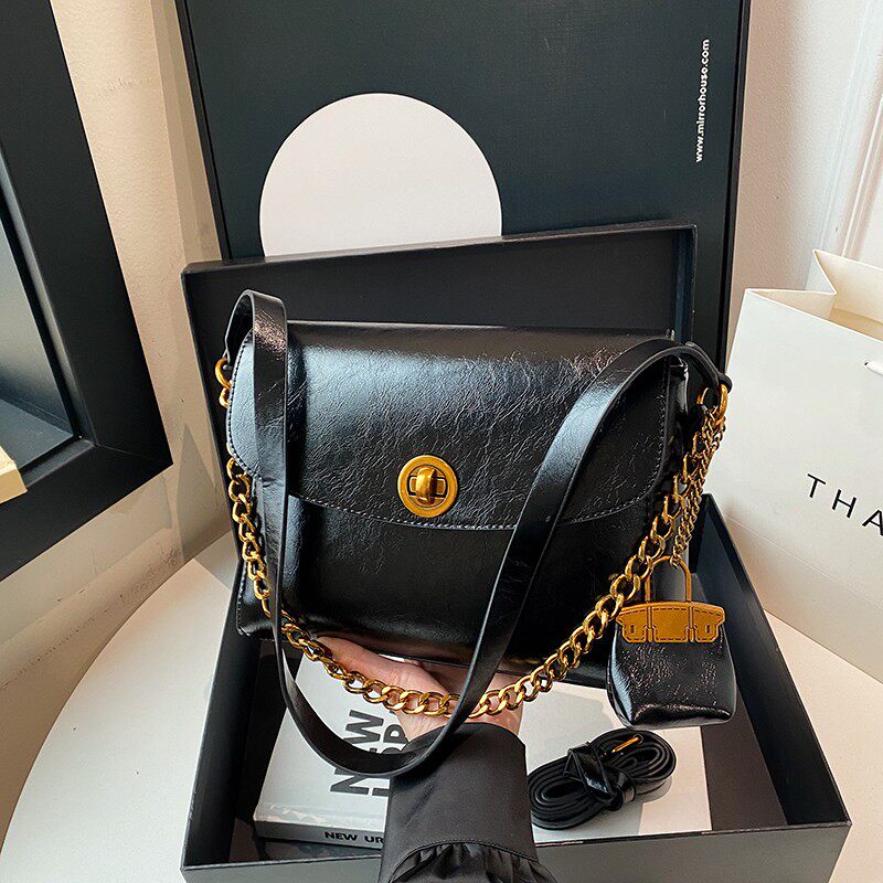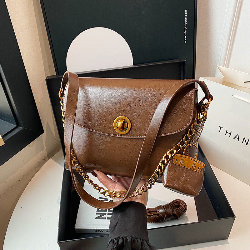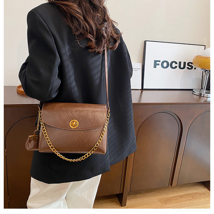 大容量时尚复古油蜡皮链条单肩包秋冬雅丹风通勤斜挎包女