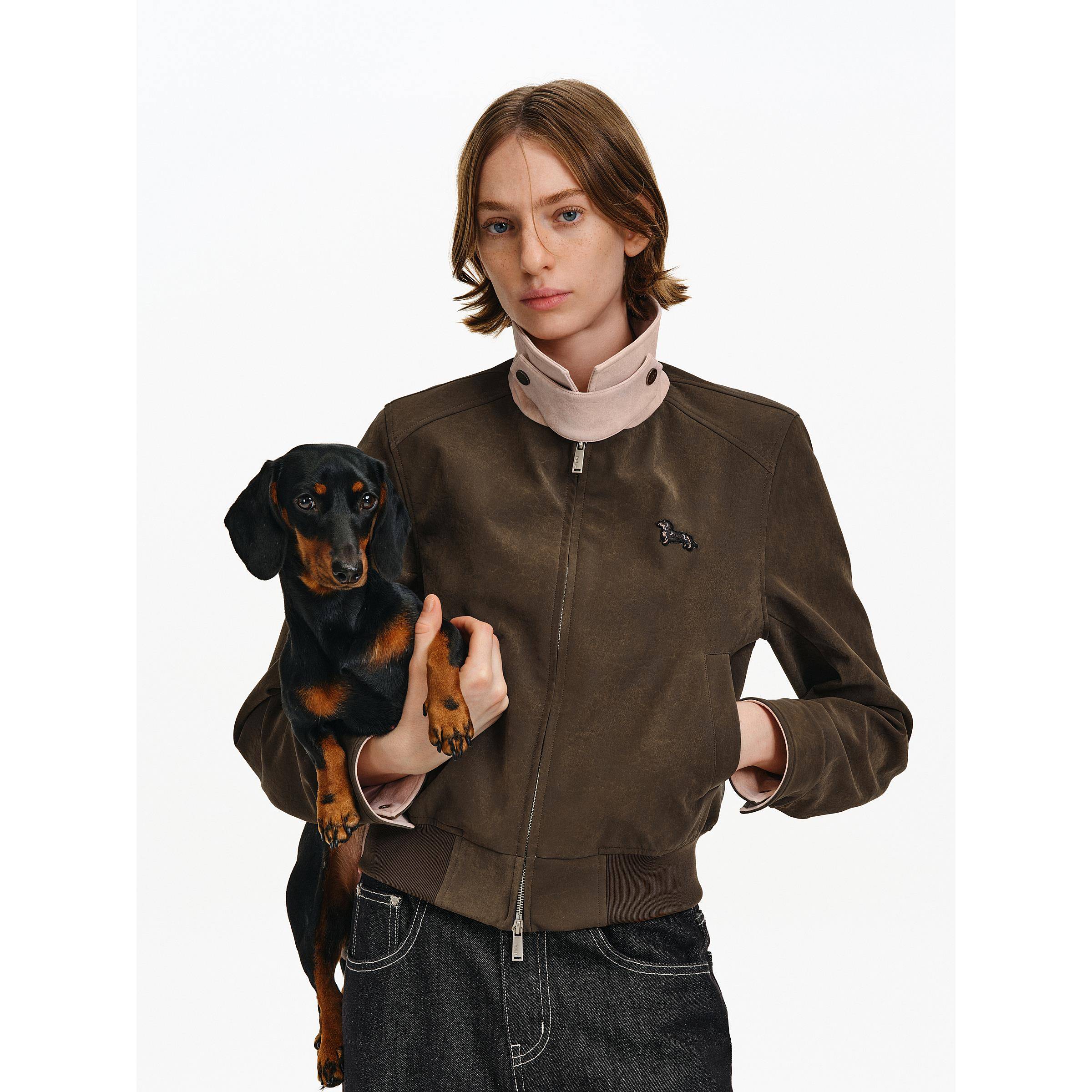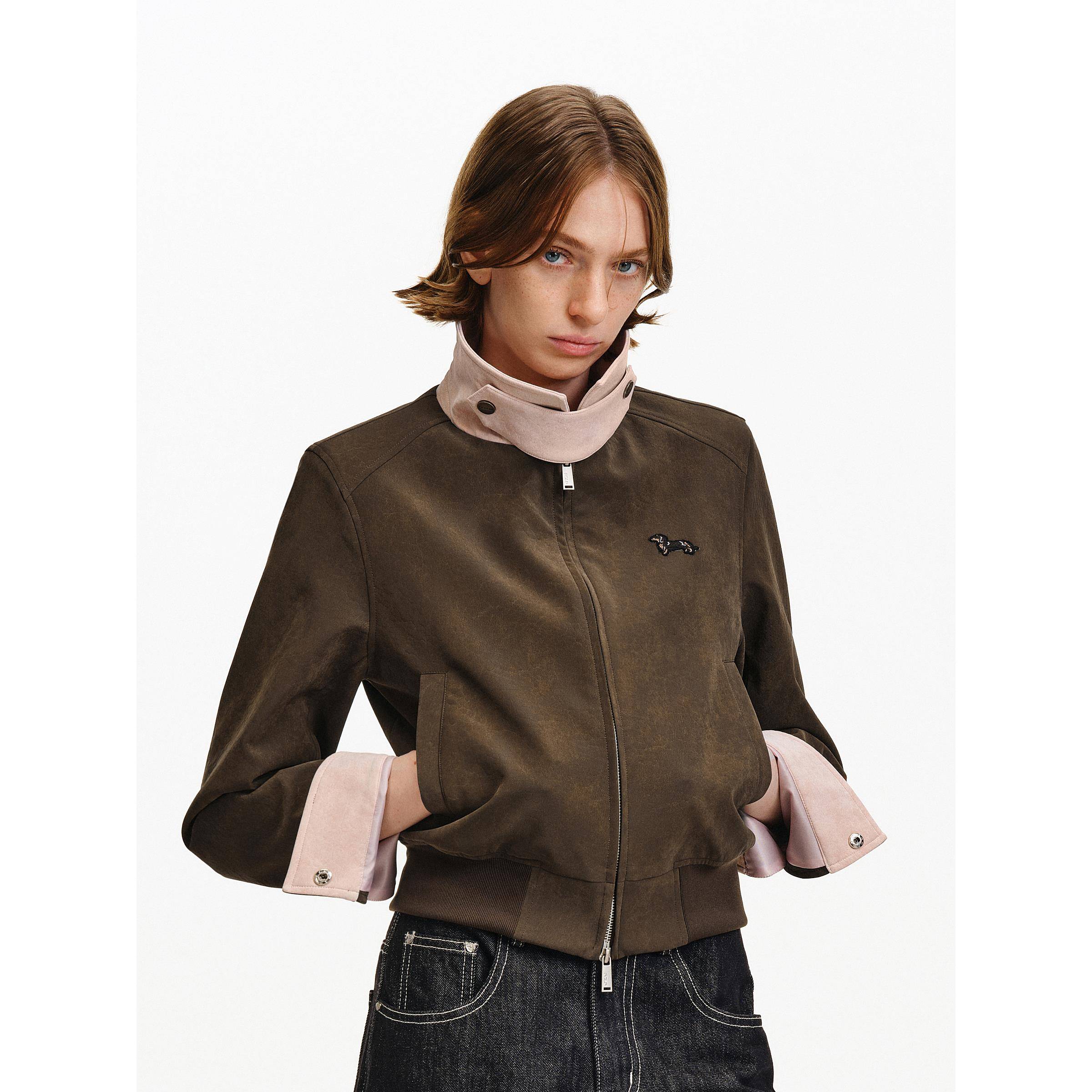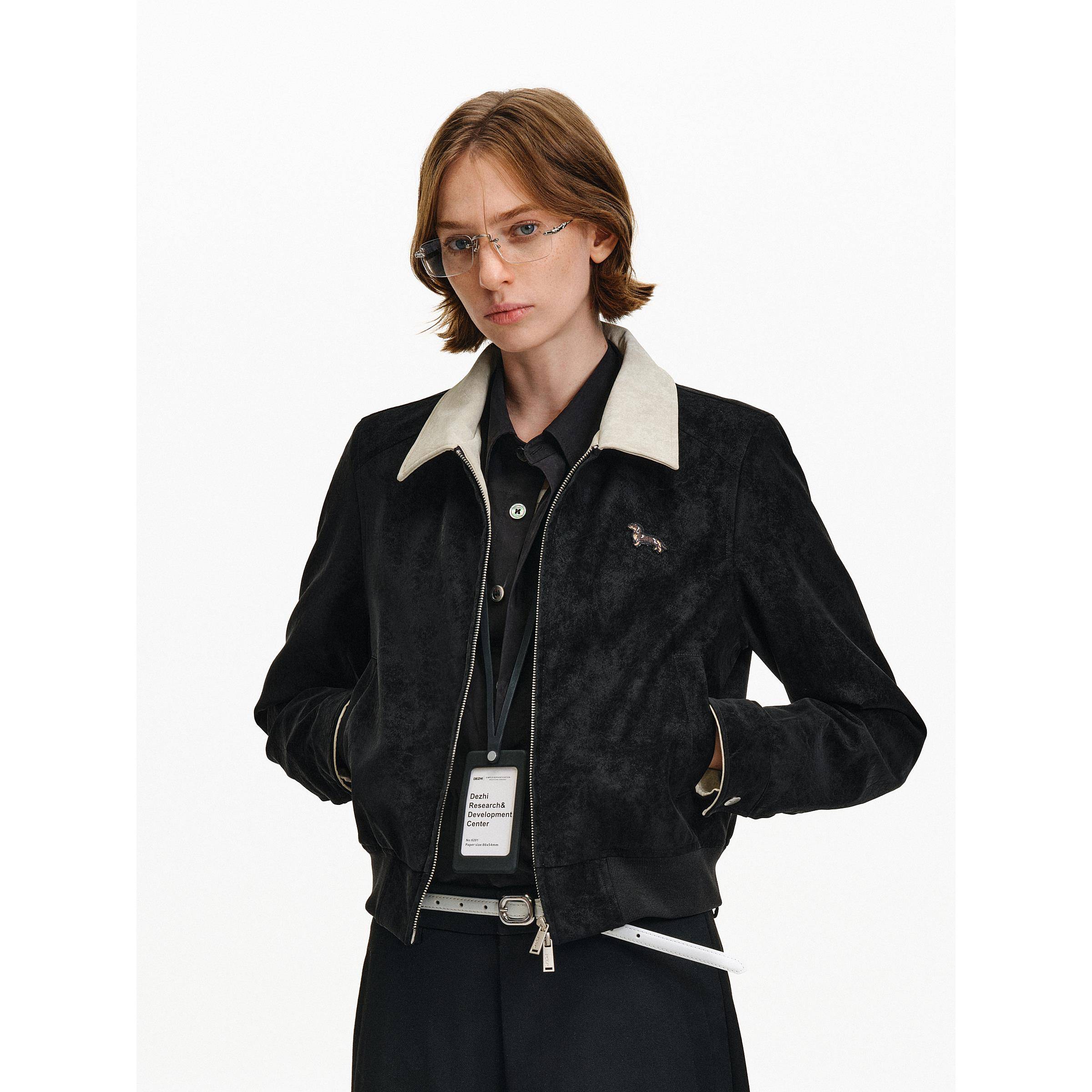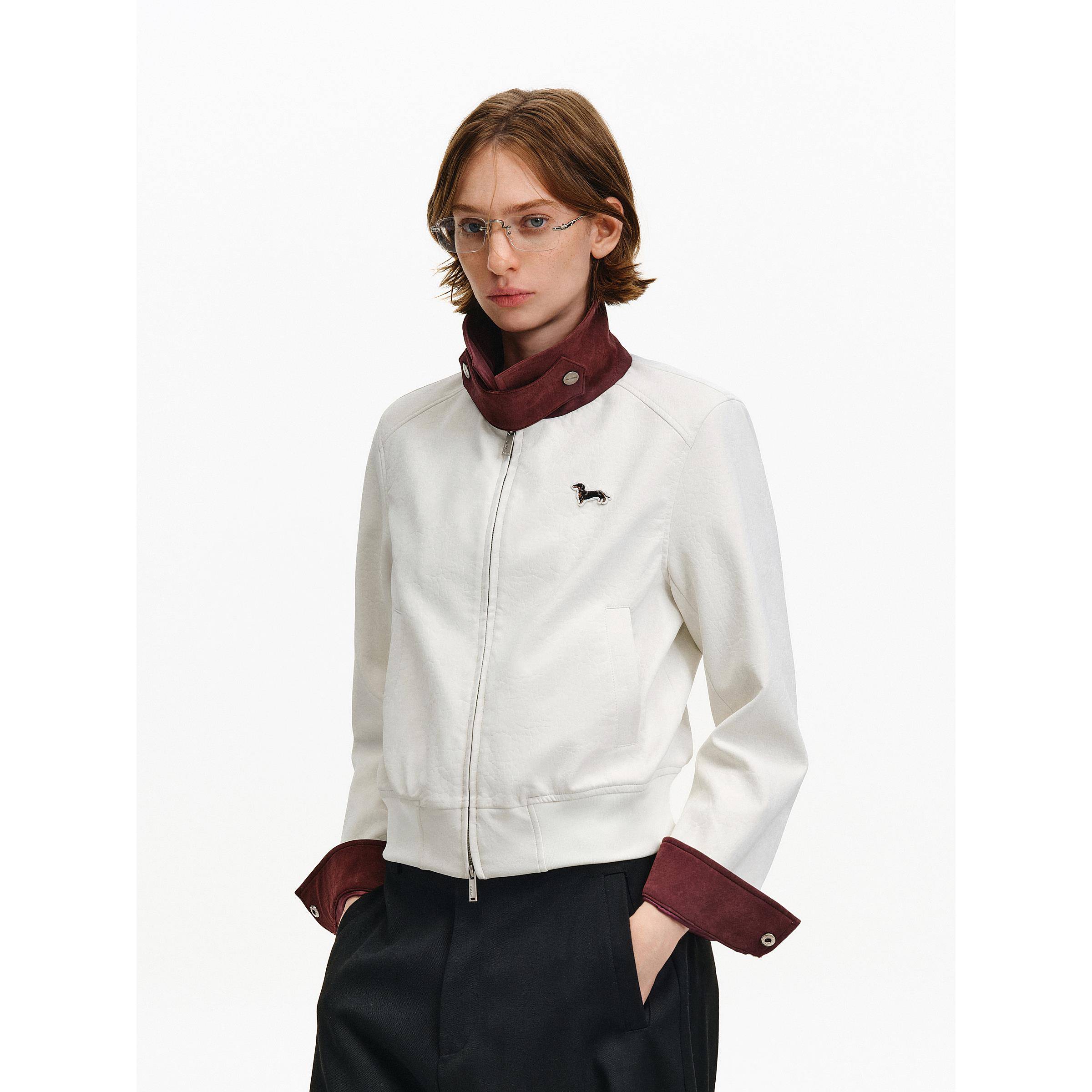 PCLP撞色领皮夹克 春秋季新款国潮牌拼接设计感短款拉链短外套女